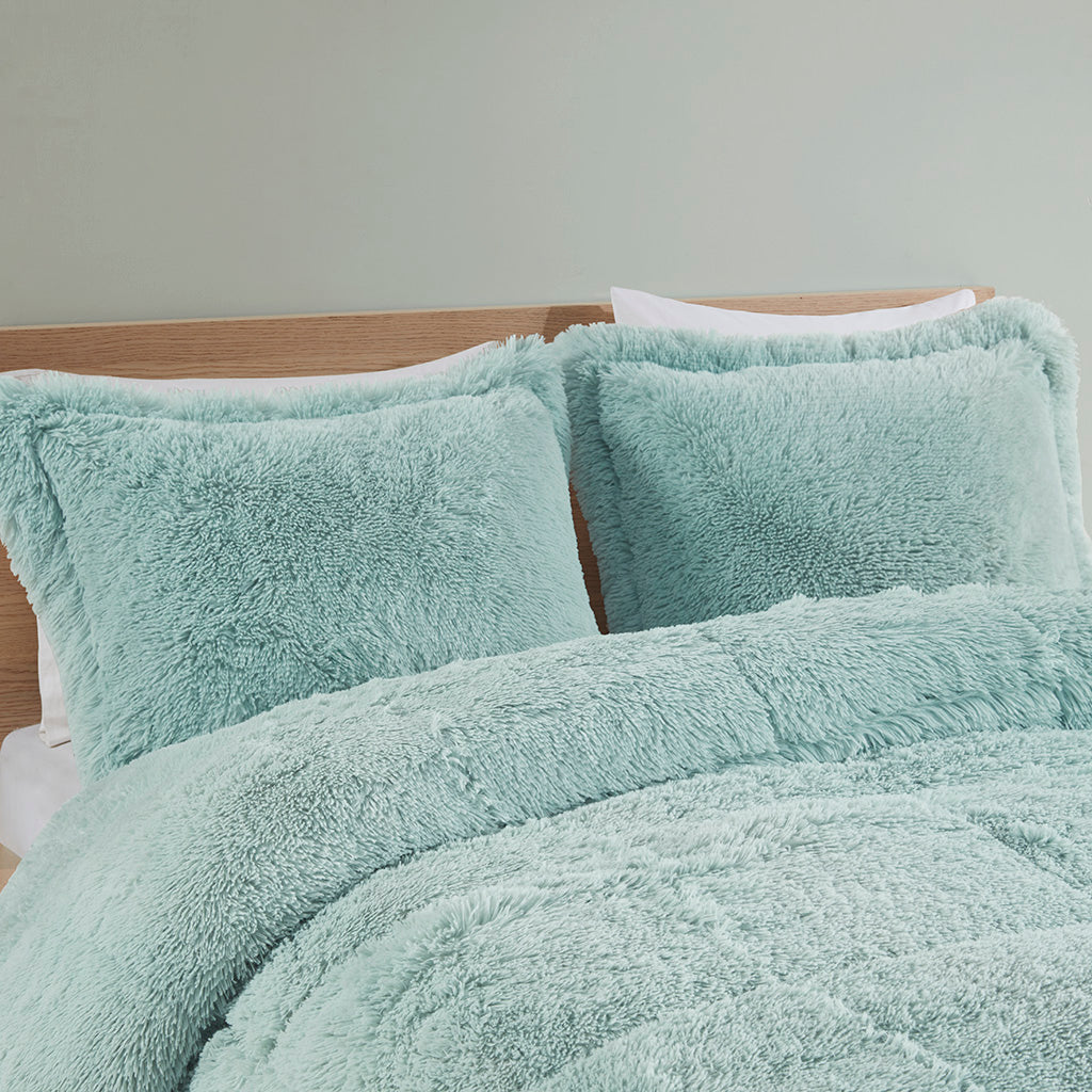 Give your bedroom a chic, cozy makeover with this luxuriously soft faux fur mini comforter set. The plush shaggy long fur face creates a modern, fluffy texture while the solid plush reverse provides warmth and a smooth finish, making it perfect for layering on beds or using as a stylish throw. Easy-care packaging may arrive rolled or compressed — simply fluff or steam lightly to restore loft and remove wrinkles.