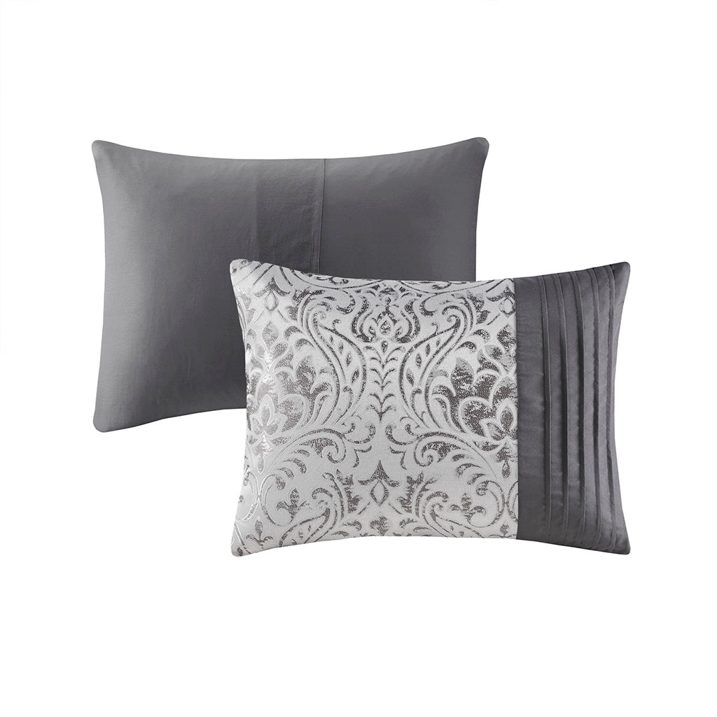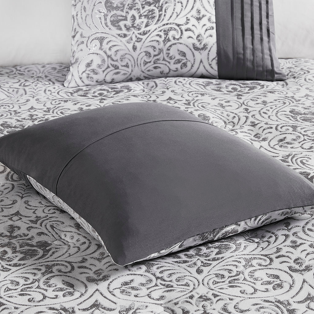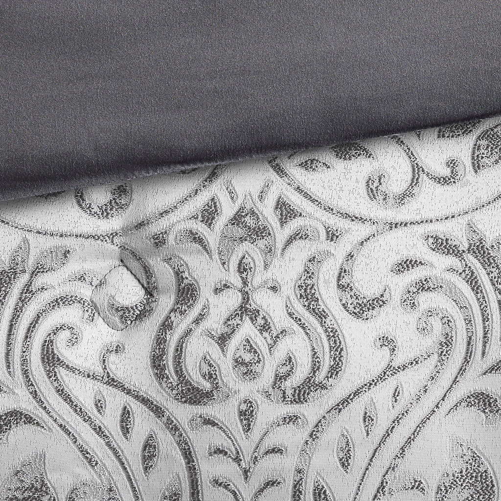 Elevate your bedroom with a refined jacquard comforter ensemble that blends classic damask styling and subtle metallic thread accents for a polished, luxurious look. This complete "bed in a bag" package delivers coordinated bedding and linens designed for immediate, cohesive styling and comfortable, hypoallergenic warmth.