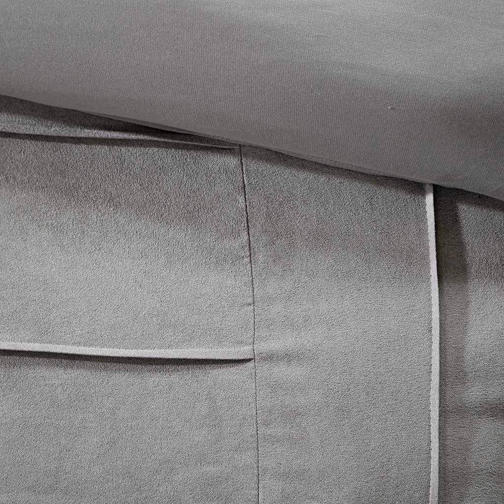 Relax into everyday luxury with this 7-piece comforter set crafted from sumptuous microsuede for an ultra-soft, cozy feel. Thoughtful pintuck detailing adds subtle texture while maintaining a laid-back, modern look. The neutral grey palette with contrasting black micro-suede accents provides versatile styling that complements a wide range of bedroom décor. Reversible construction lets you switch up the look, and the complete set includes matching shams and accessories for a pulled-together bed.