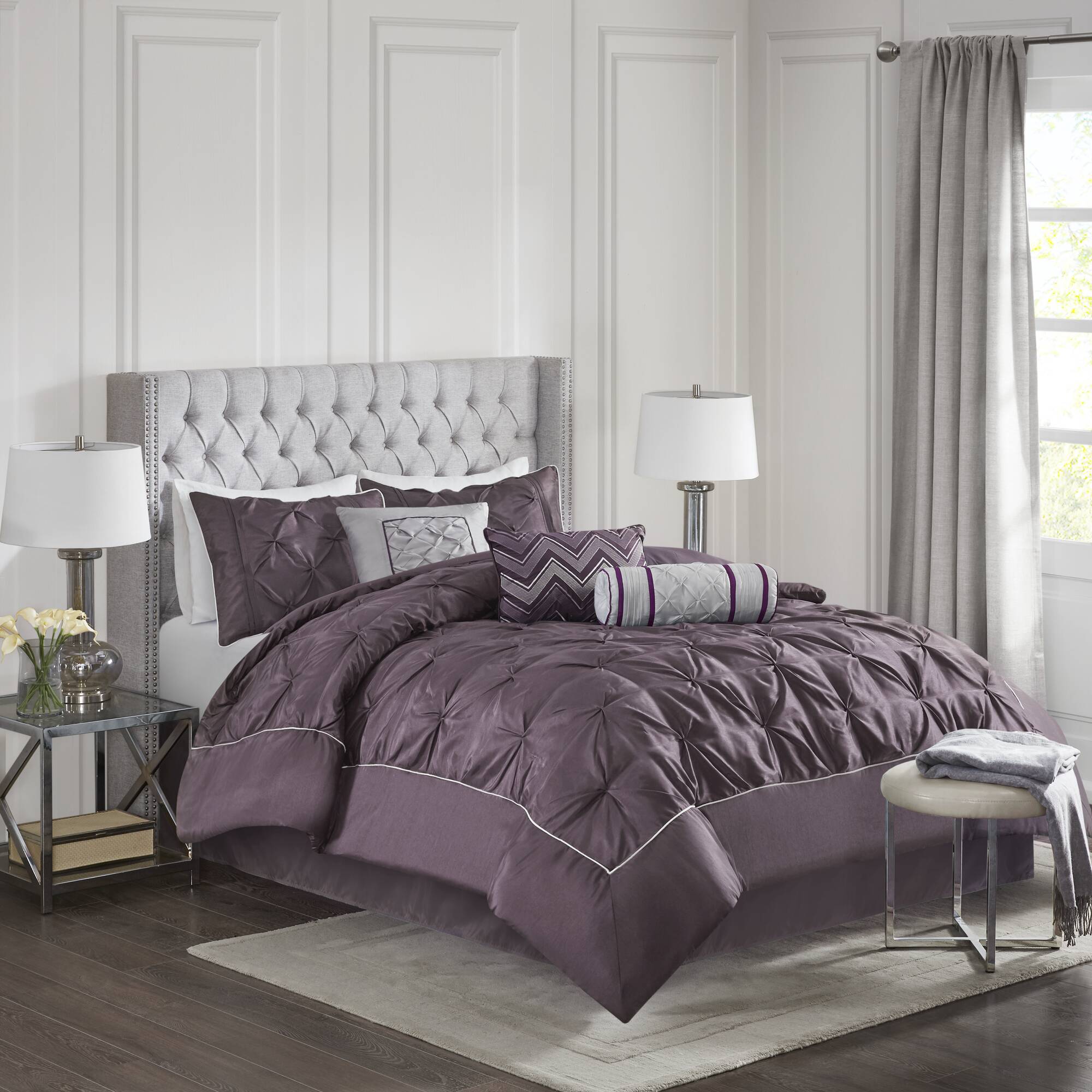 Add luxurious texture and rich color to your bedroom with this tufted comforter set from the Laurel collection. Expertly constructed for both style and comfort, the deep plum hue and pieced fabric design create depth and a tailored look that anchors your décor while remaining easy to maintain.