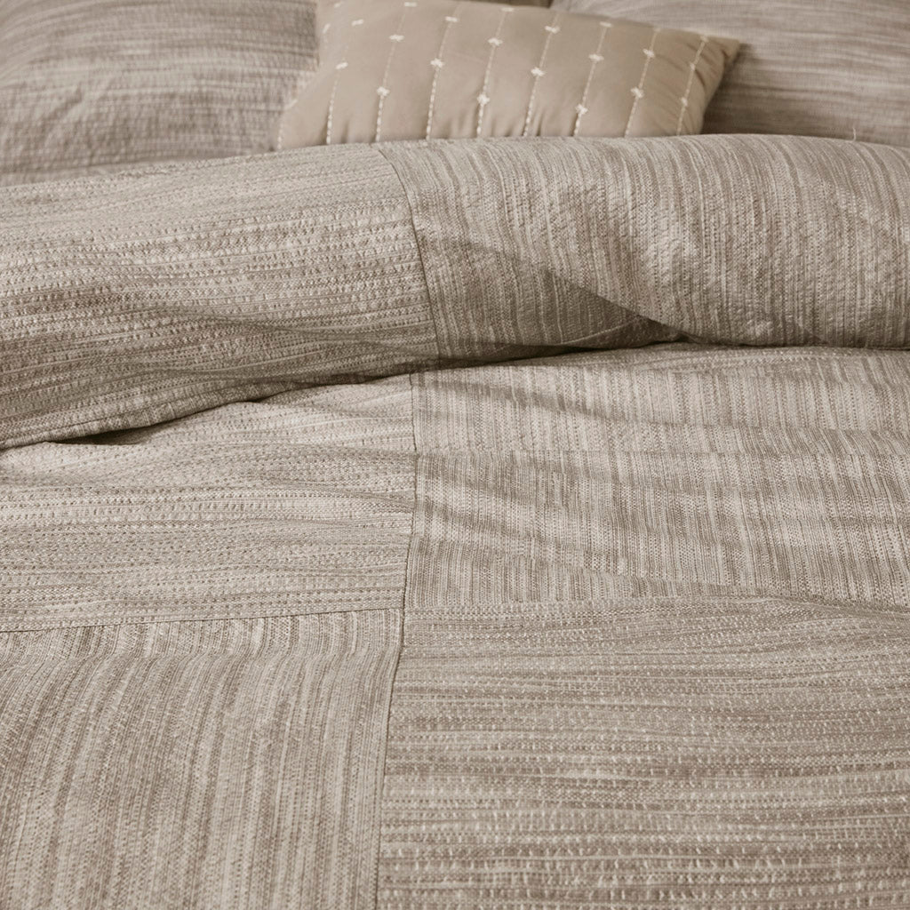 Give your bedroom an effortless update with the Madison Park Walter 7-piece printed seersucker comforter set. Its textured seersucker weave, neutral taupe palette, and layered decorative accents create a relaxed yet refined look that suits modern, transitional, or coastal-inspired interiors. Designed for easy care and everyday comfort, this coordinated ensemble includes everything needed to complete the bed.