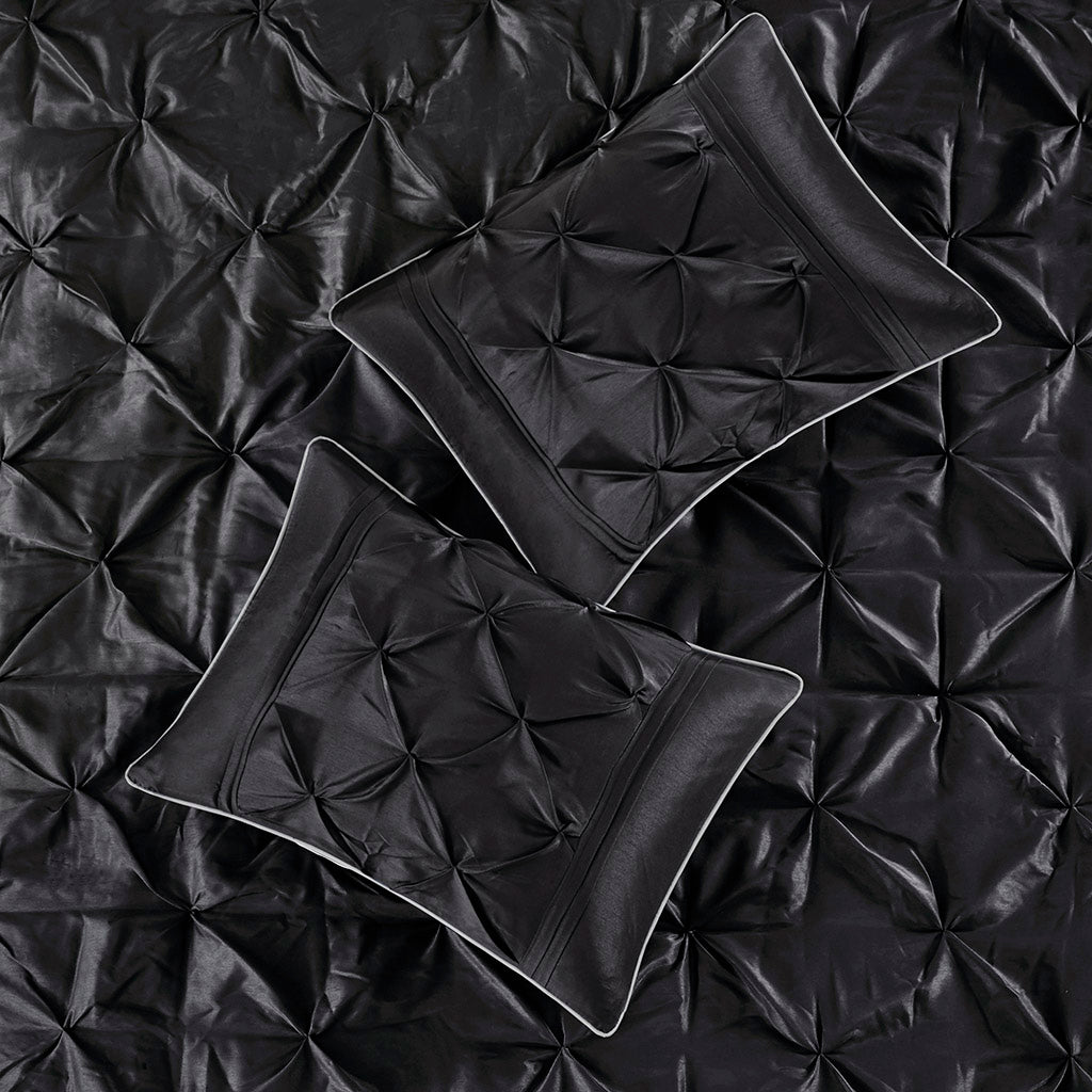 Give your bedroom an instant style upgrade with the Madison Park Laurel Collection 7-piece tufted comforter set. Expertly designed in a rich true black, the luxurious tufting and pieced-fabric construction add depth and texture while the smooth fabric border creates a refined, tailored finish. Made for easy care and versatile styling, this set brings both visual interest and everyday comfort to your sleep space.