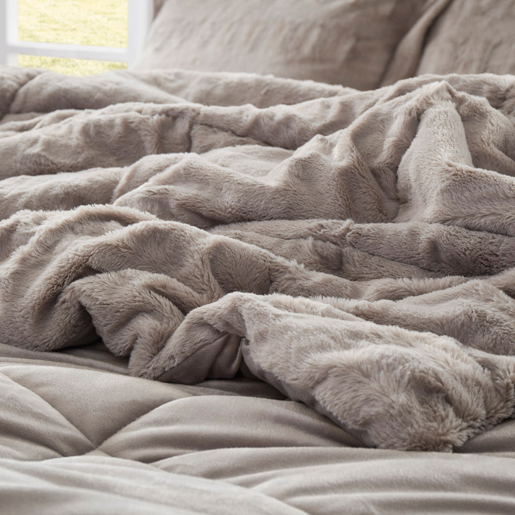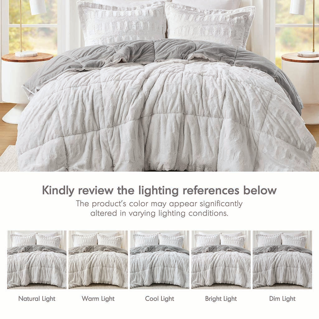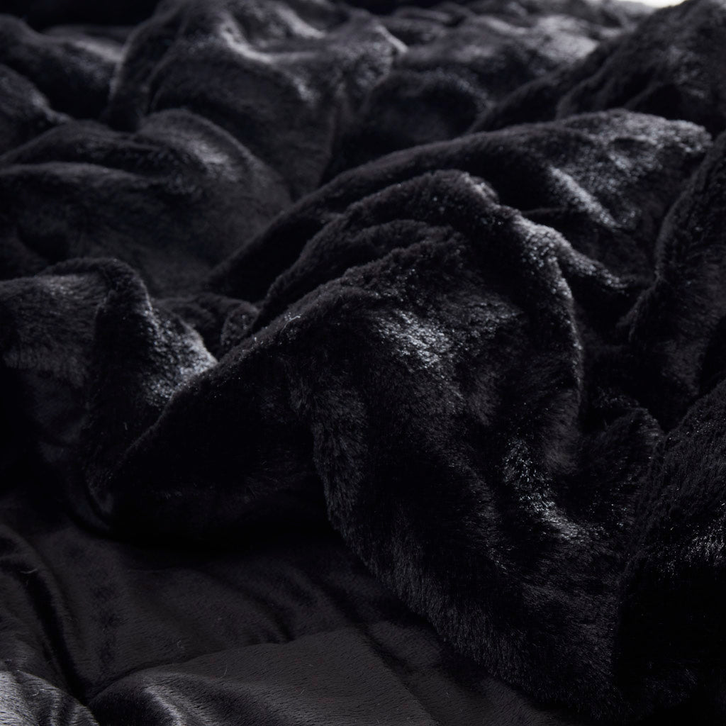 Wrap your bedroom in sumptuous softness and modern glamour with this reversible faux fur comforter mini set. Designed for cozy warmth and easy style, the Gia Back Print Long Fur Comforter Mini Set features a plush brushed faux fur face and a silky faux mink reverse, plus matching shams for a coordinated, finished look—ideal for updating any sleep space with a luxe, hypoallergenic layer.
