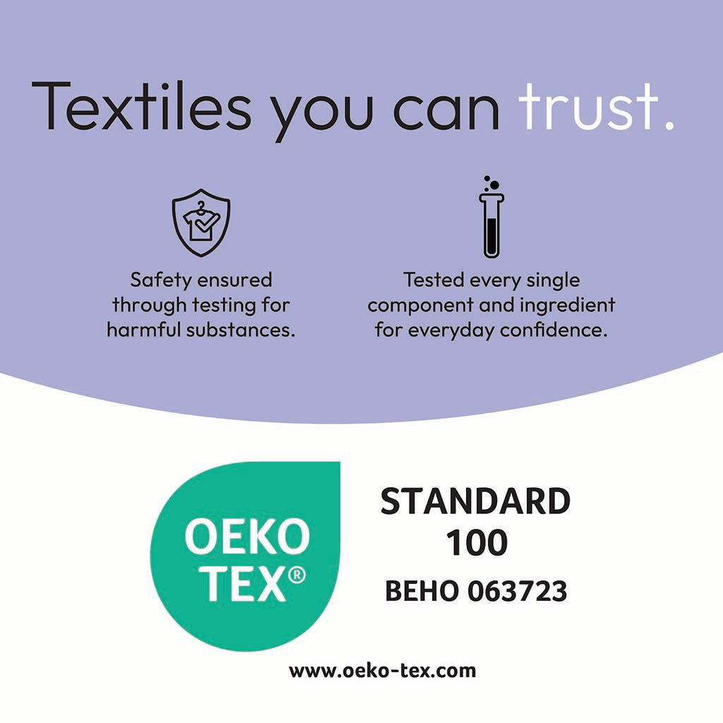 - OEKO-TEX certified: Tested to be free of harmful substances and chemicals to ensure safe, high-quality materials.