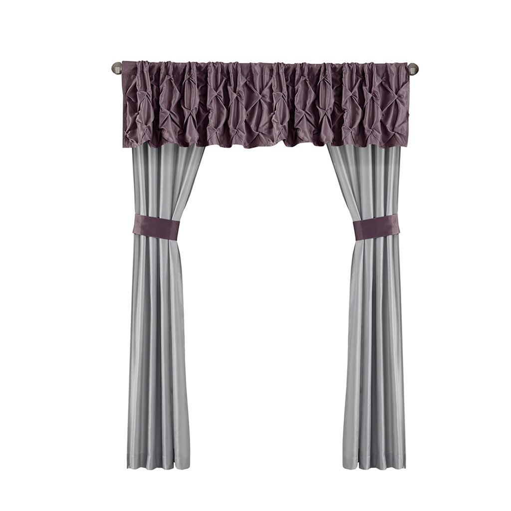 - Window treatment included: Four window panels, four tiebacks, and two tufted valances coordinate with the bedding for a unified bedroom presentation.