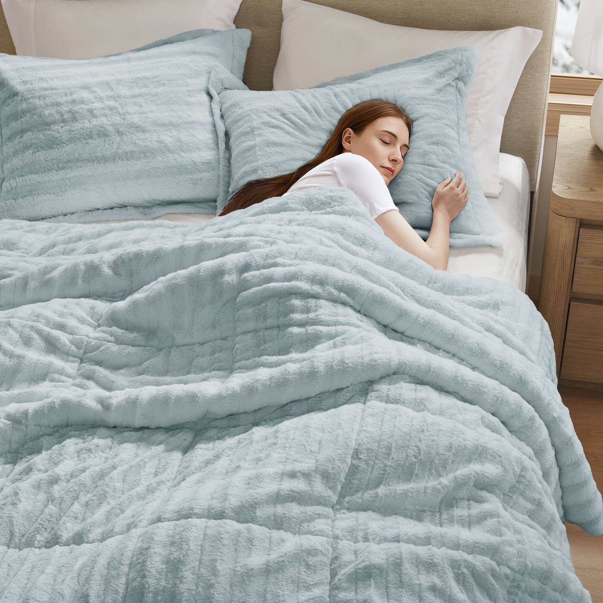 Elevate your bedroom with luxurious texture and cozy warmth. This faux fur comforter mini set brings a chic, hotel-quality look while remaining soft to the touch and easy to maintain. Ideal for adding depth and comfort to any décor, it pairs glamorous style with practical care and safety certifications.