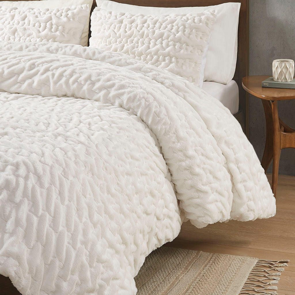 Bring luxurious texture and cozy warmth to your bedroom with this ruched faux fur down alternative comforter set. The plush faux fur face and tailored ruched design create a sophisticated, tactile focal point, while the solid microfiber reverse provides a smooth, breathable layer for versatile styling. OEKO‑TEX certification and hypoallergenic filling make this set a safe, comfortable choice that’s easy to care for and ready to transform your sleep space.