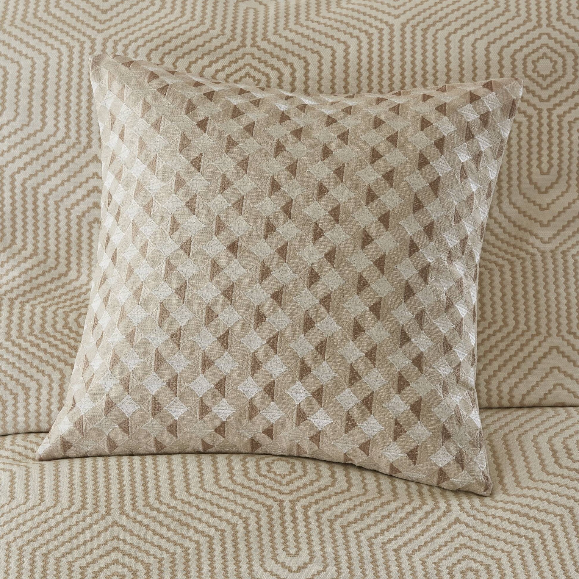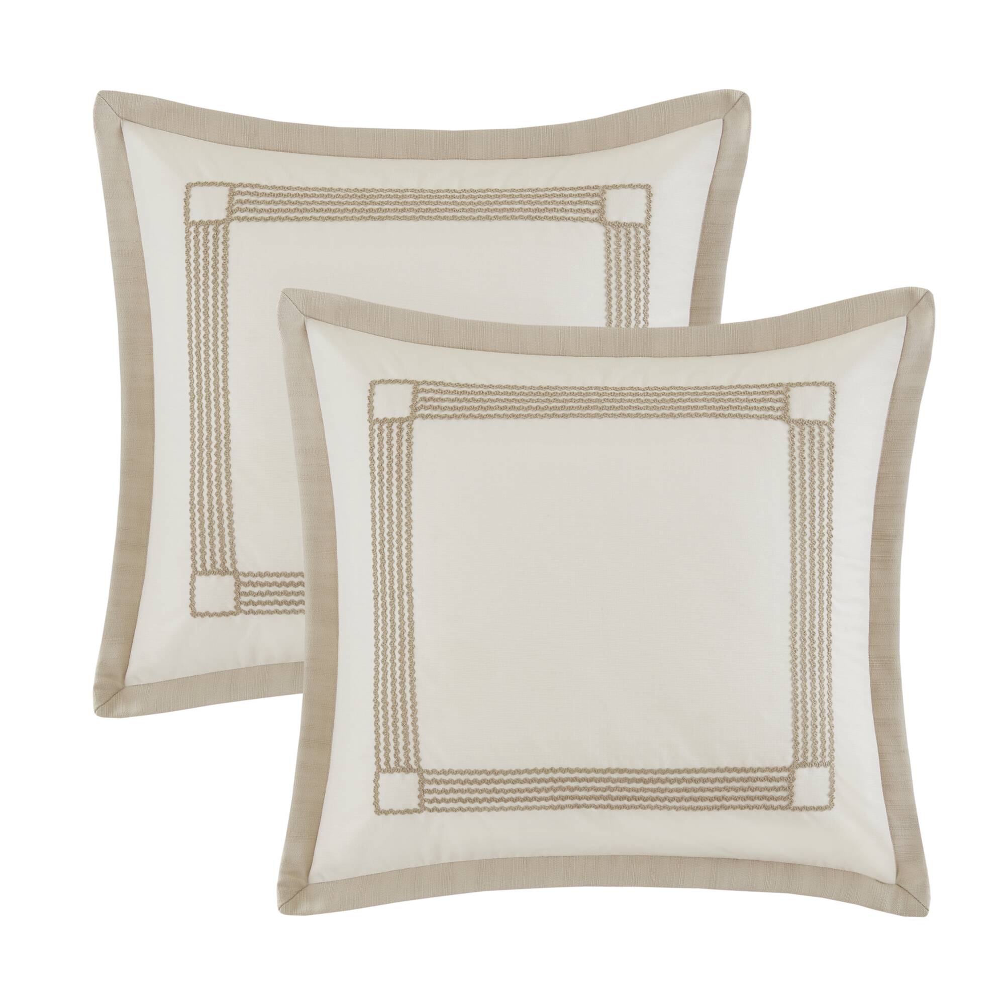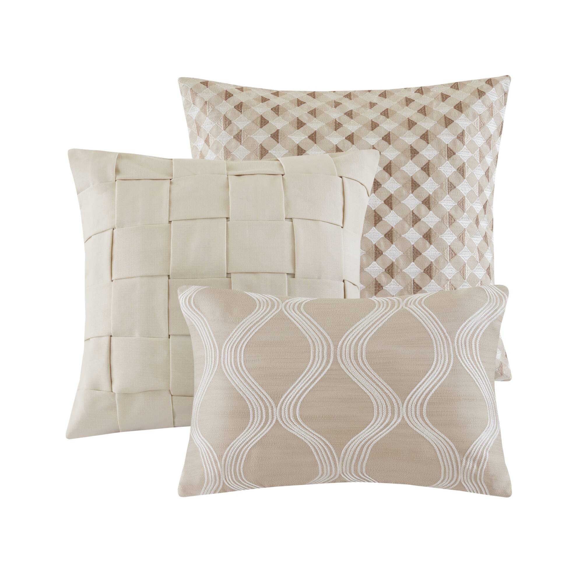 - Decorative details: Three bespoke-inspired accent pillows showcasing tone-on-tone embroidery and hand-guided basket strapping; each pillow cover includes a hidden zipper for a clean, finished look.