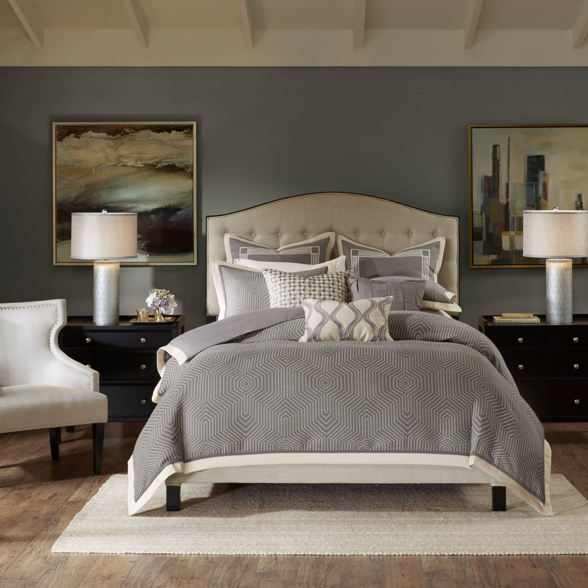 Elevate your bedroom with a refined blend of texture and timeless design. This coordinated bedding ensemble in soft grey and ivory delivers a polished, hotel-inspired look while providing layered comfort and easy care. Thoughtful construction details—like a removable duvet-style insert and hidden closures—ensure a smooth, tailored appearance on the bed.