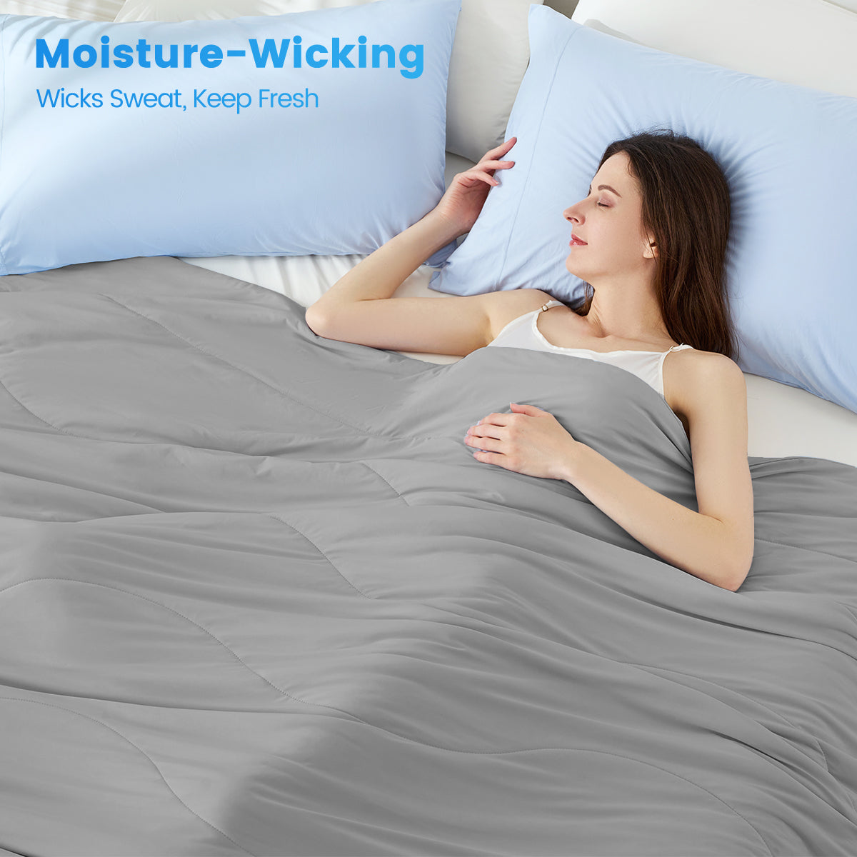 - Dimensions: 170 GSM (fabric weight) — shell composition listed as 90% nylon / 10% spandex. (If specific comforter size dimensions are required, please provide mattress size or product variant.)