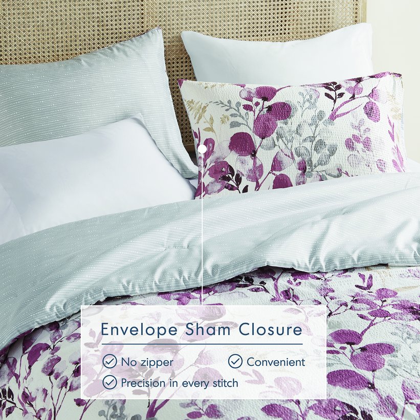 Bring a fresh, cottage-inspired look to your bedroom with this reversible floral botanical seersucker comforter set. Lightweight yet cozy, the textured seersucker surface and soft microfiber fill create a breathable layer that stays comfortable year-round. The reversible design offers two coordinated looks—floral on one side and classic stripes on the other—so you can refresh your décor without extra pieces. Oeko-Tex certification ensures the materials are free from harmful substances and gentle against sensitive skin.