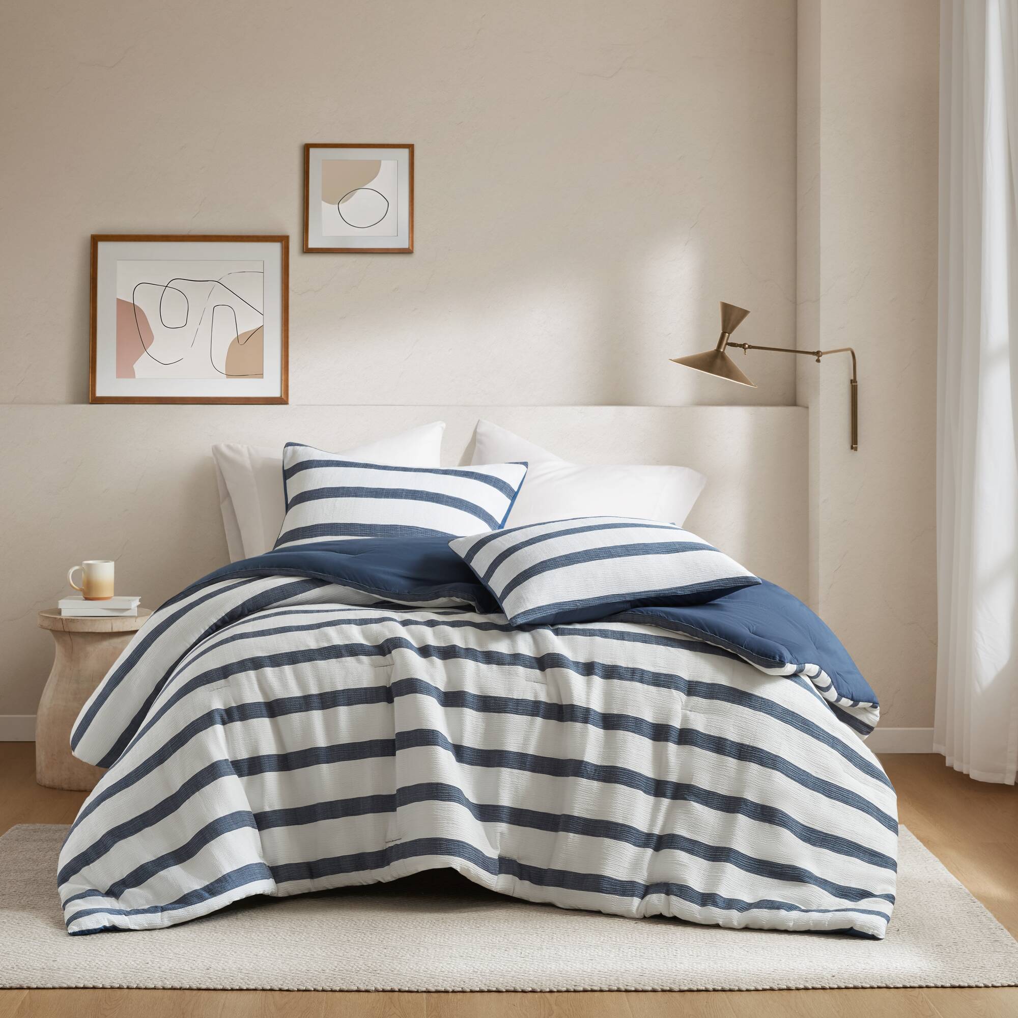 Elevate your bedroom with a refined, minimalist comforter set that blends artisanal texture and lasting color. This yarn-dyed Merritt striped comforter offers woven tonal stripes and a subtle crinkle for a relaxed, coastal-Scandi aesthetic while delivering all-season comfort and easy-care durability.