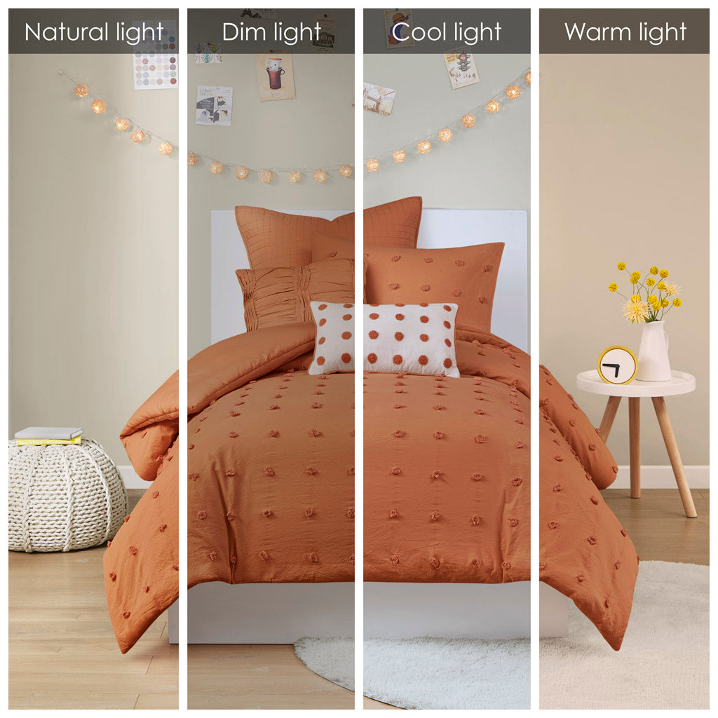 Refresh your bedroom with the Urban Habitat Brooklyn cotton jacquard comforter set — a blend of shabby-chic texture and modern ease. Soft tufted chenille dots add subtle dimension while coordinated shams, euro shams, and decorative pillows create a polished, layered look. Hypoallergenic, dustproof fill and OEKO-TEX certification provide safe, comfortable sleep and simple machine-wash care for everyday living.