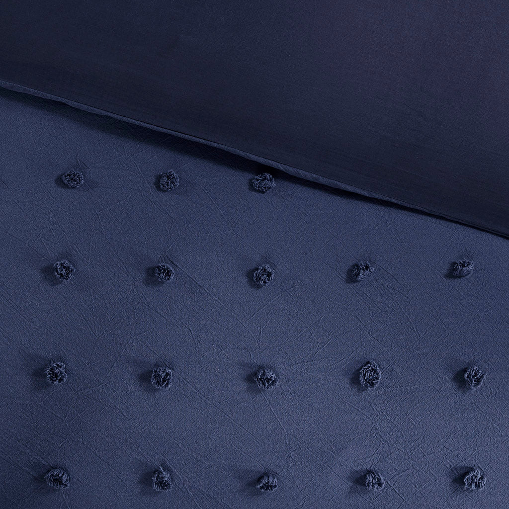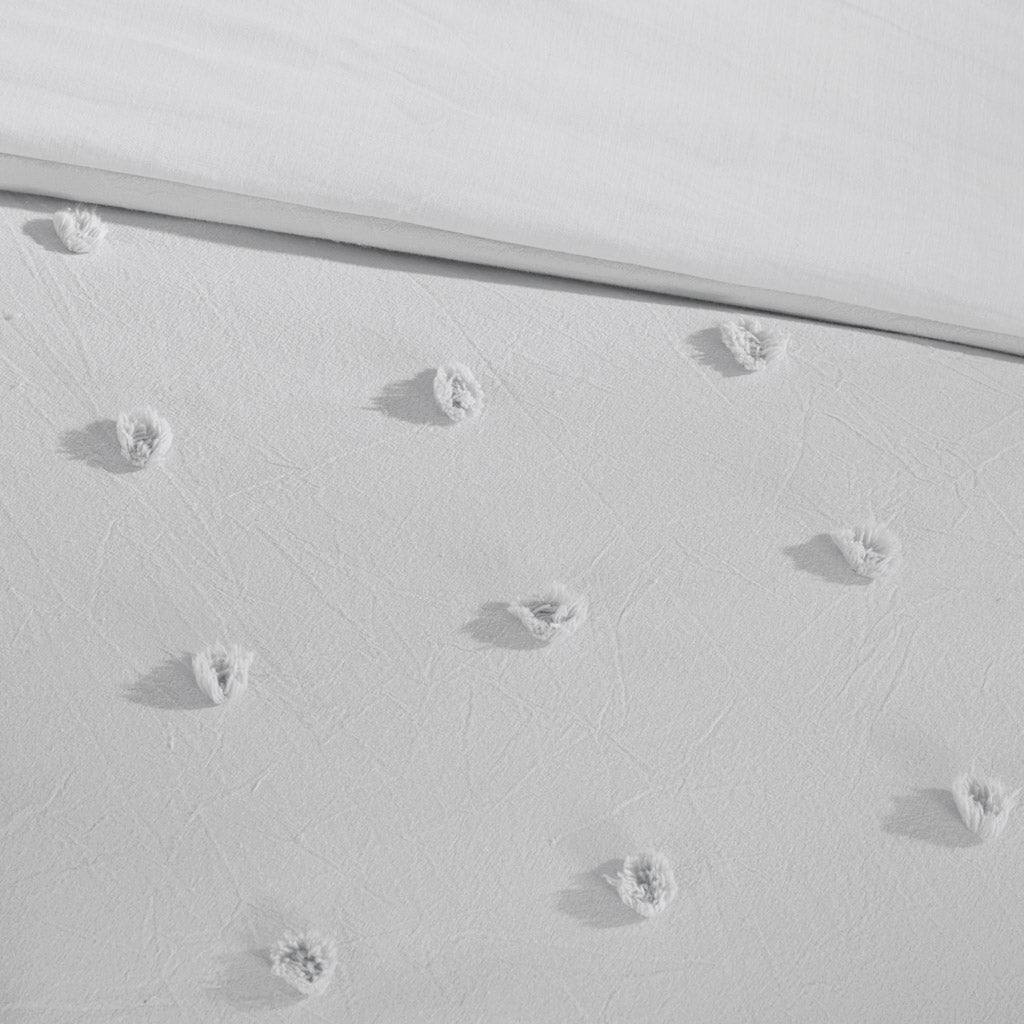 - Key features: Soft cotton jacquard comforter with small tufted chenille dots for a textured, shabby-chic aesthetic