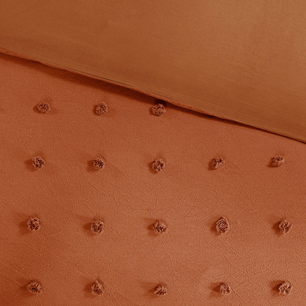 - Key features: Soft cotton jacquard comforter with small tufted chenille dots for a textured, shabby-chic aesthetic