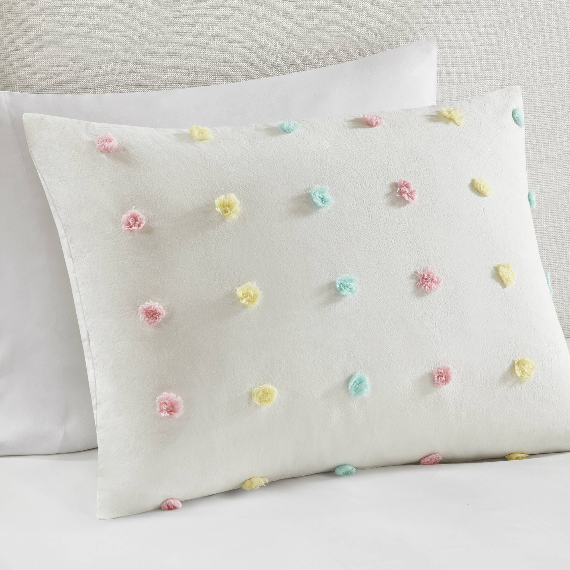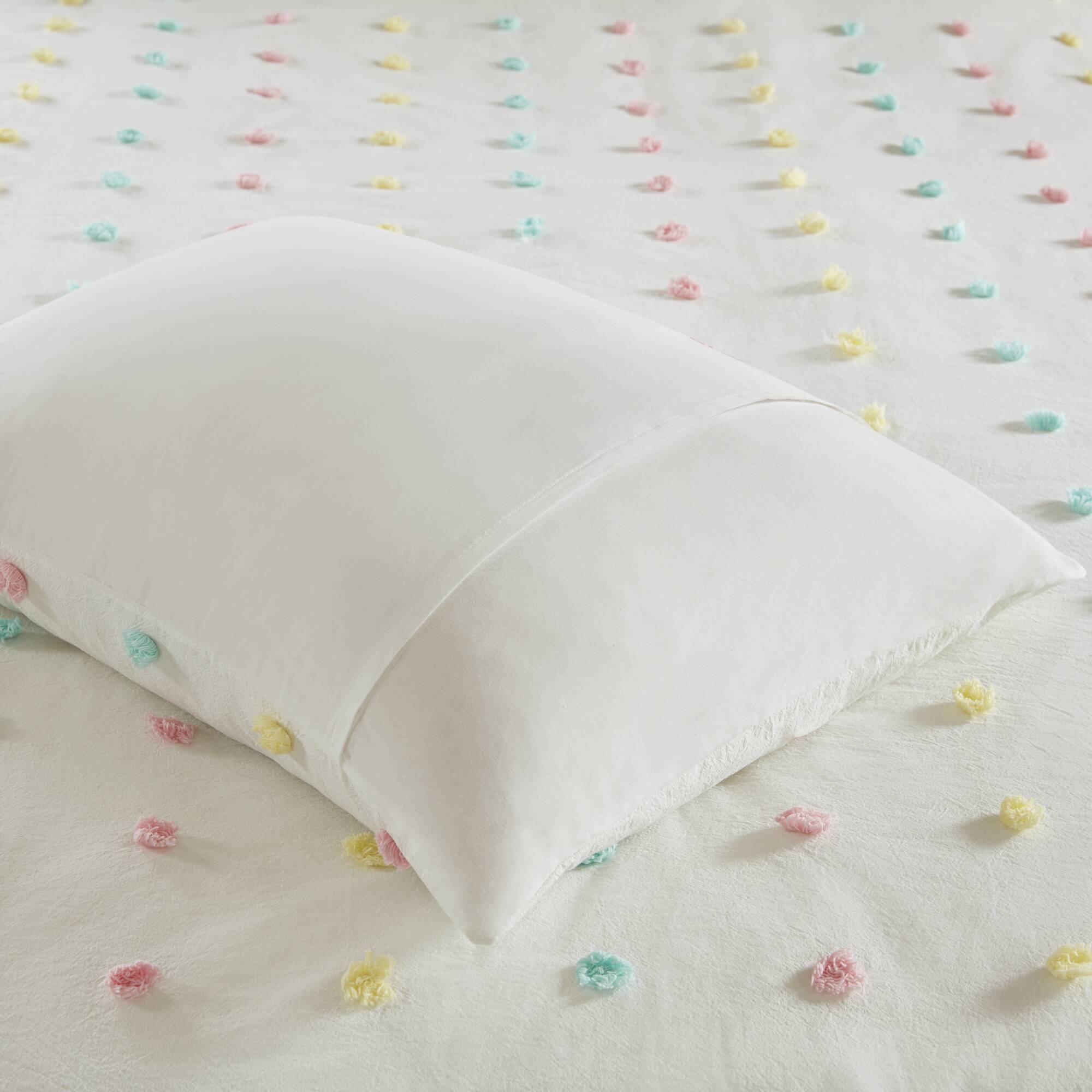 Give your child's bedroom a charming, textured refresh with this soft cotton jacquard comforter set—designed for everyday comfort, playful style, and easy care. The pom pom jacquard surface creates subtle depth and a shabby-chic aesthetic, while coordinating shams and decorative pillows deliver a polished, layered look that’s perfect for playtime, sleepovers, and everyday living.