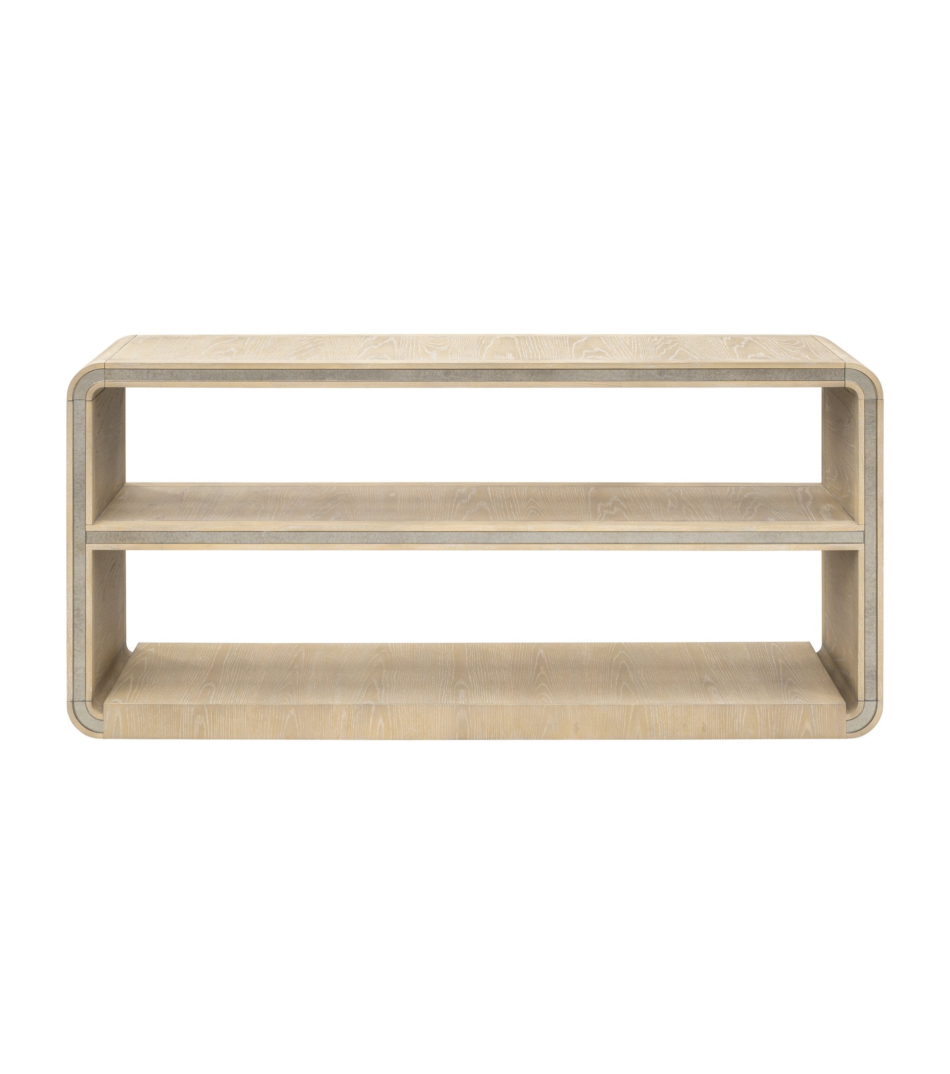 - Sleek modern design crafted from white oak veneers in a casual blonde oak finish
