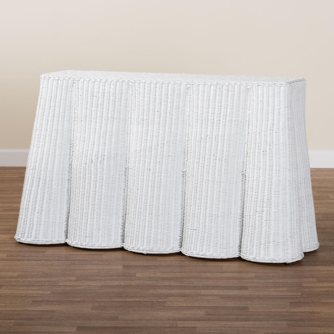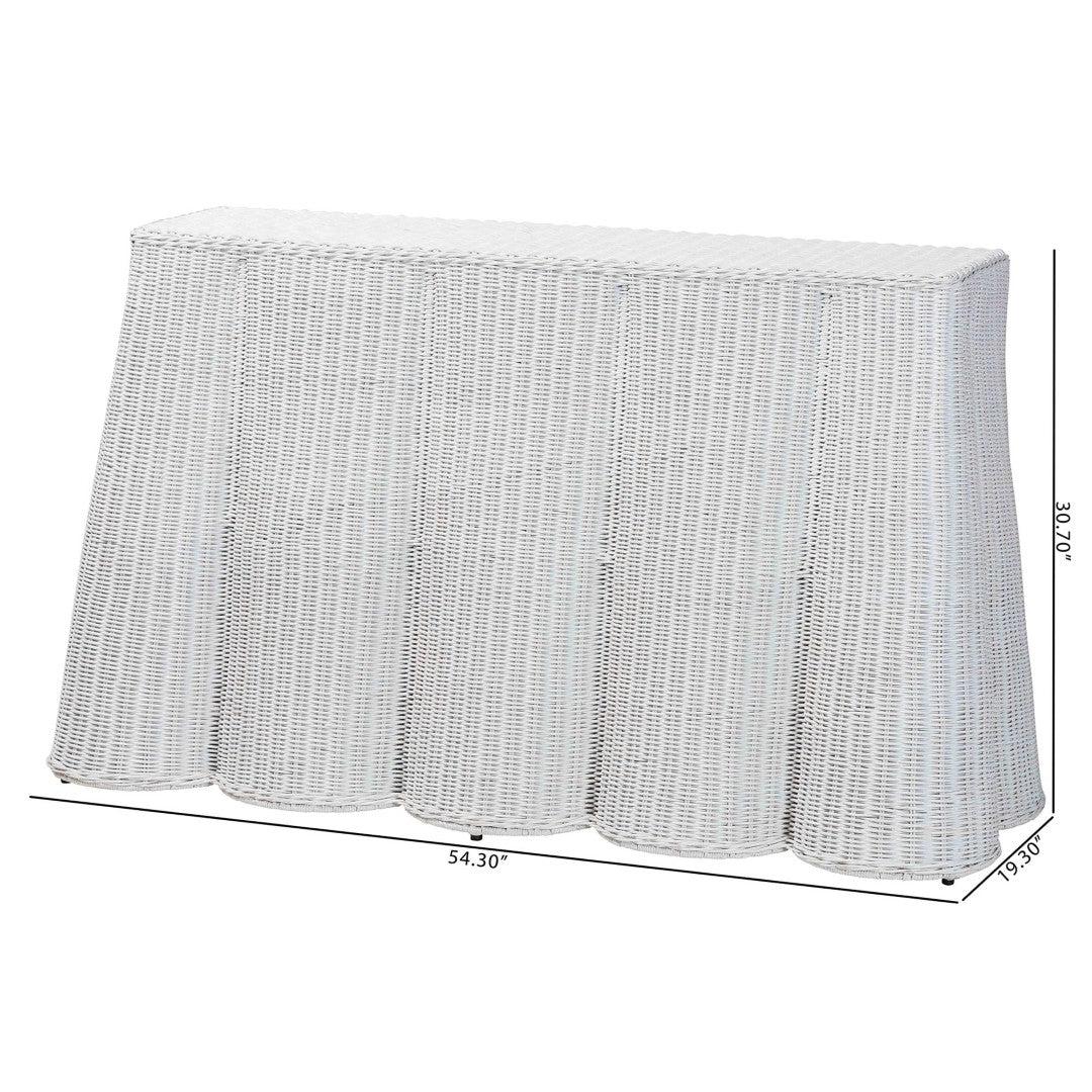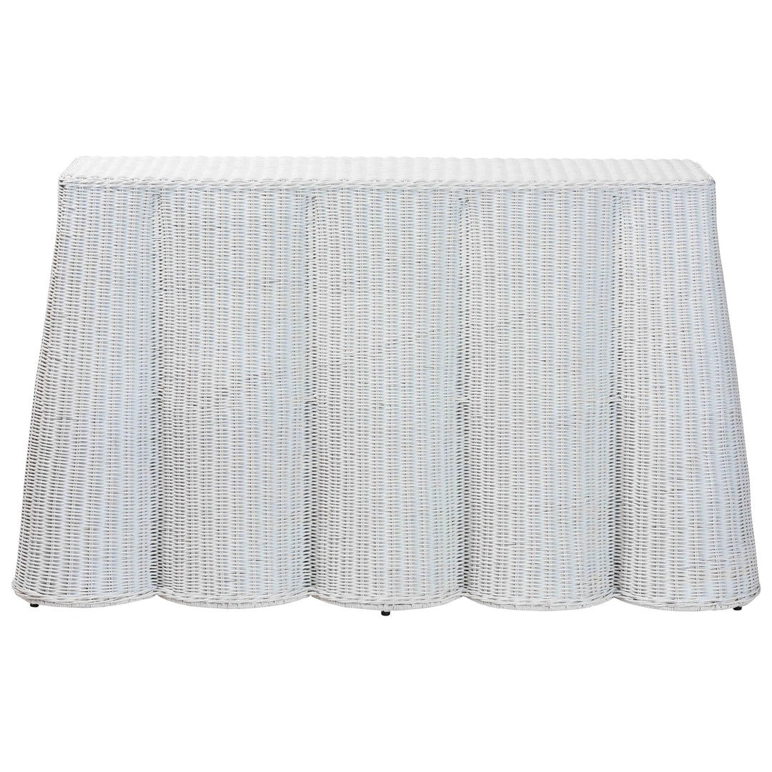 Invite a relaxed, tropical vibe into your home with this Palm Bohemian console table. Handcrafted in Indonesia, it pairs a clean metal frame with artisan-woven rattan and a scalloped base to create a warm, textured focal point that complements entryways, living rooms, or any shared space. Arriving fully assembled, this piece balances rustic charm with practical surface area for lamps, decor, and everyday essentials.