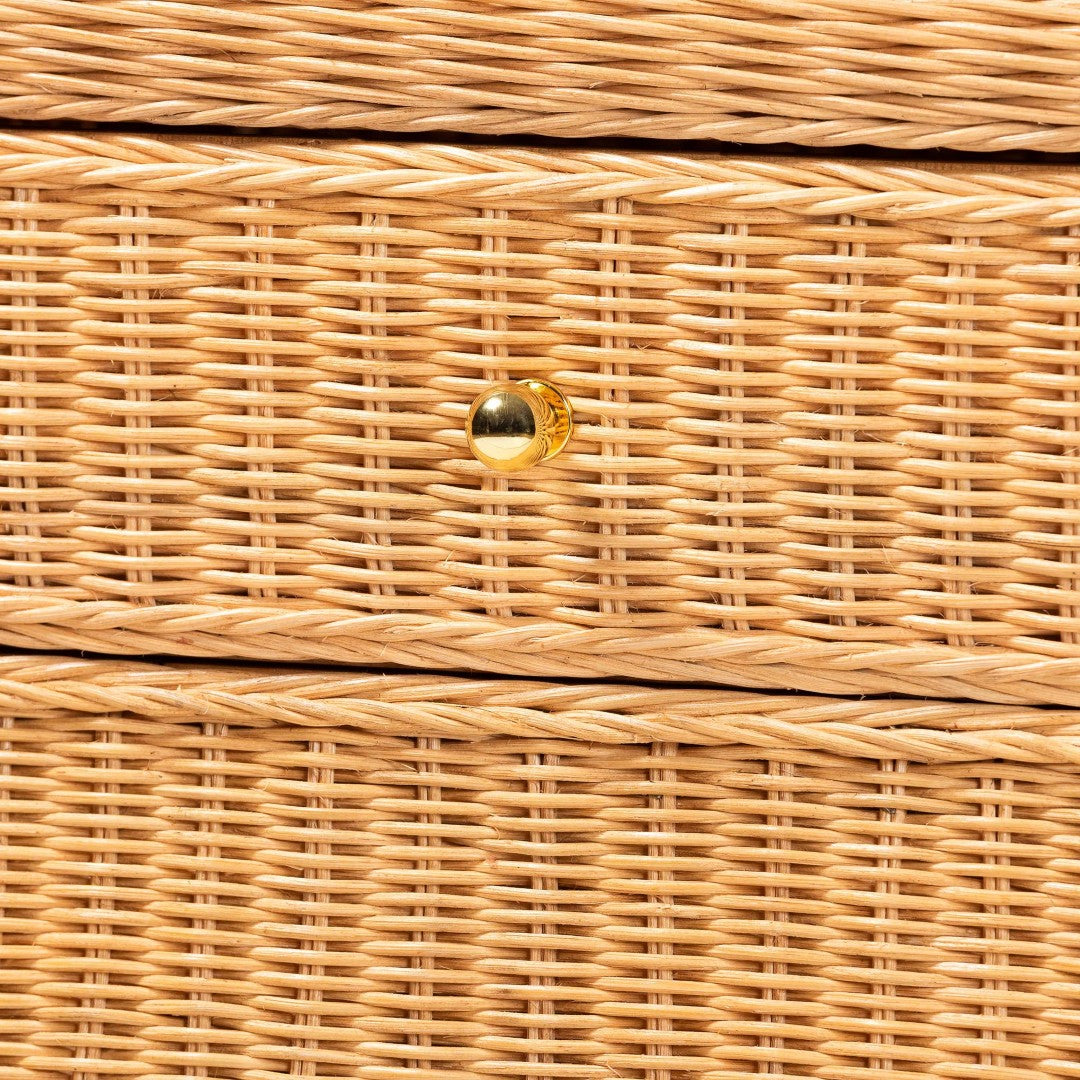 - Decorative hardware: Tapered metal drawer pull accented with braided rattan bands for a refined rustic-modern touch.