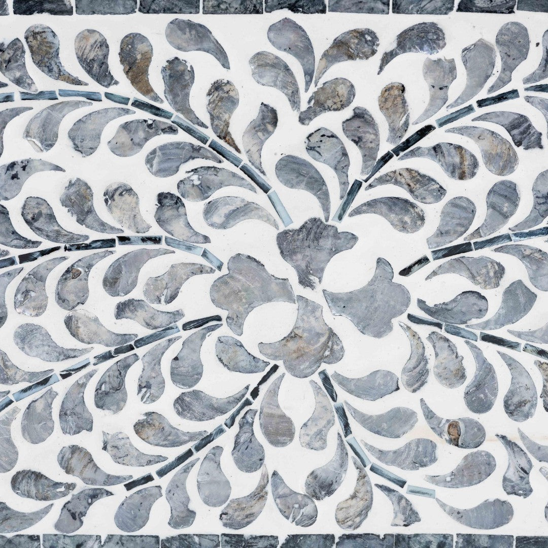 - Design: Black-and-white floral mosaic crafted from Capiz shell for an artisanal, coastal look