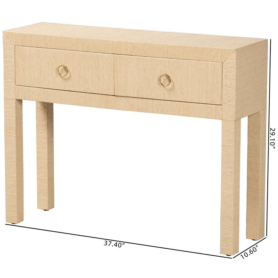 SKU:Noah 2 DW-Light Brown-Grasscloth-Console Table