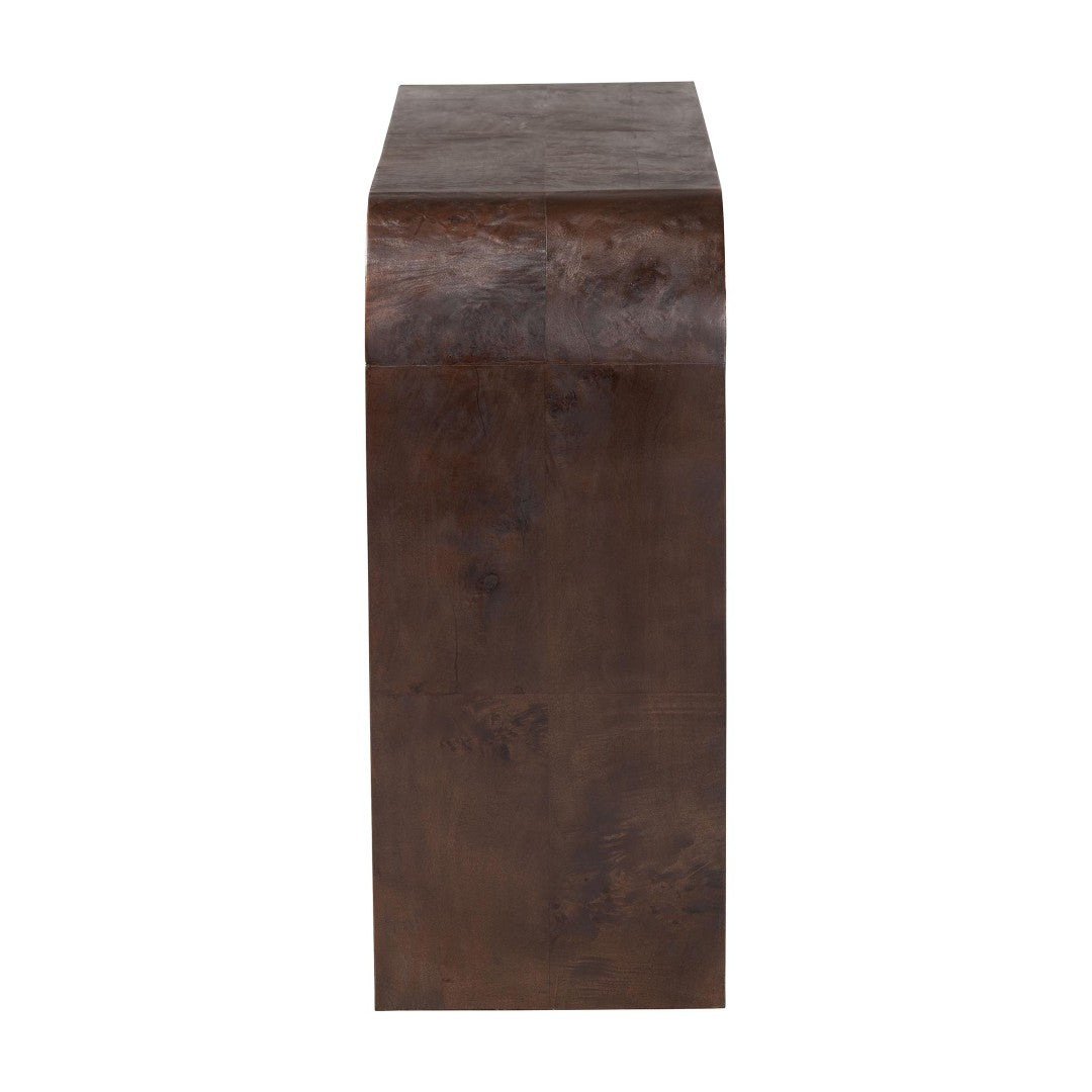Bring refined, natural beauty to your entryway, living room, or hallway with the Revelle console table. Handcrafted in Indonesia with a striking burl wood veneer and a flowing waterfall silhouette, this piece pairs exotic grain patterns with a minimalist profile to create a focal point that’s both artistic and highly functional. Designed to arrive fully assembled, the Revelle offers a generous display surface and solid construction that complements contemporary and transitional interiors alike.