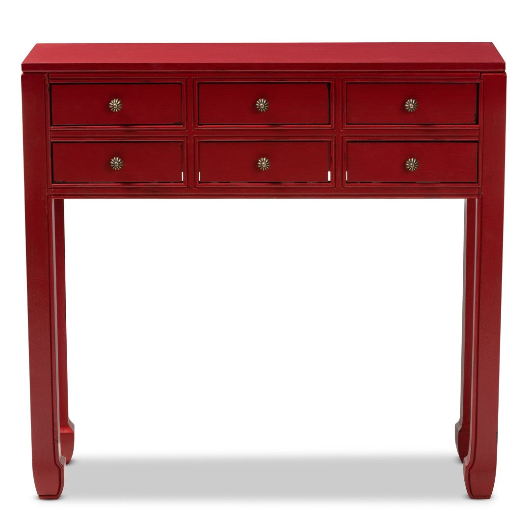 Add a touch of old‑world elegance and global flair to your entryway or living space with this richly finished console table. Crafted from sturdy Bayur wood and finished in a distinctive antique red, the piece blends classic curves and ornamental detailing with practical storage—making it both a decorative focal point and a functional accent for hallways, mudrooms, or foyers.