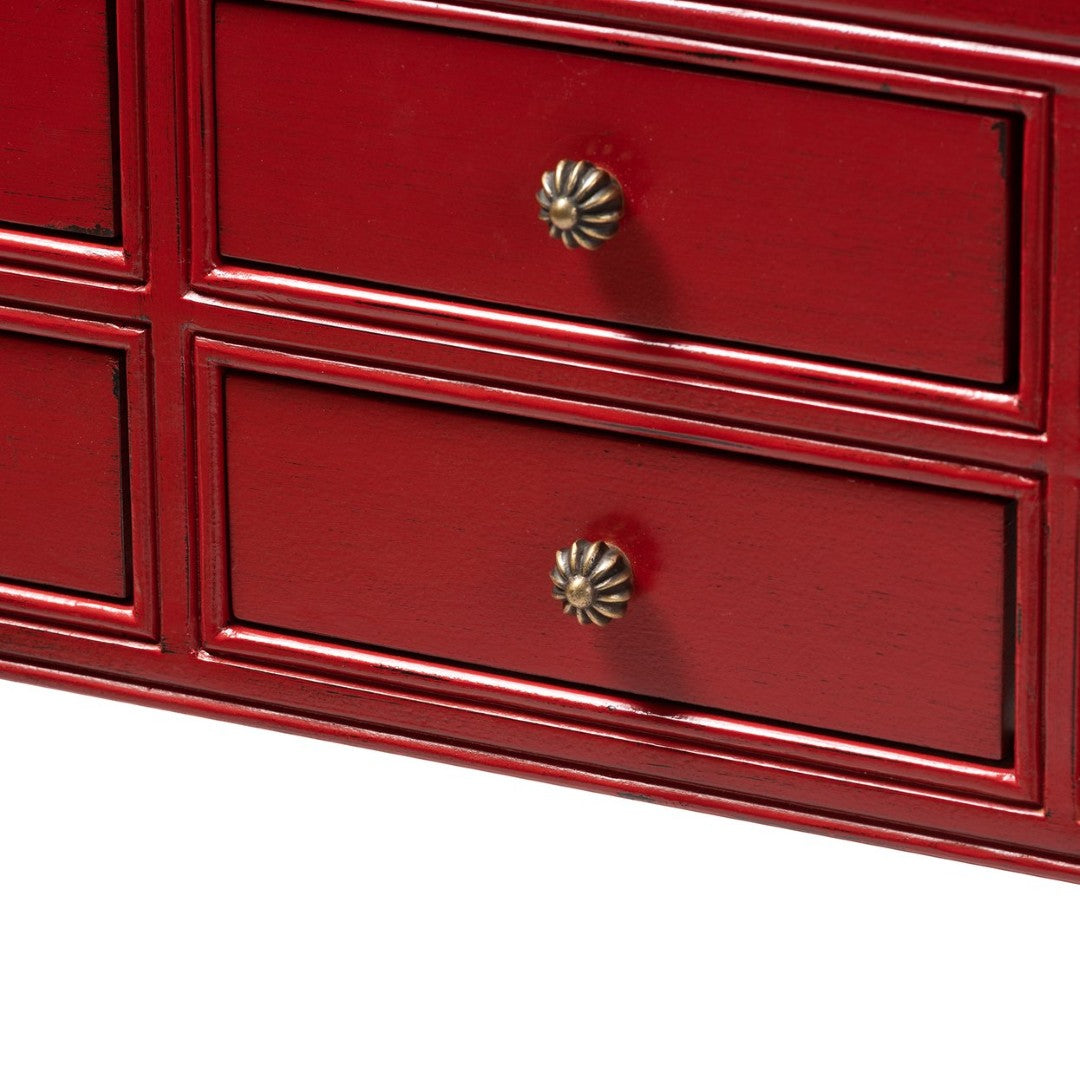 - Solid Bayur wood frame finished in an eye-catching antique red for a distinctive statement look