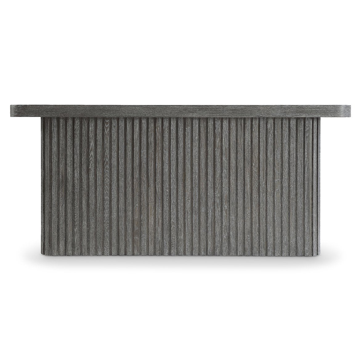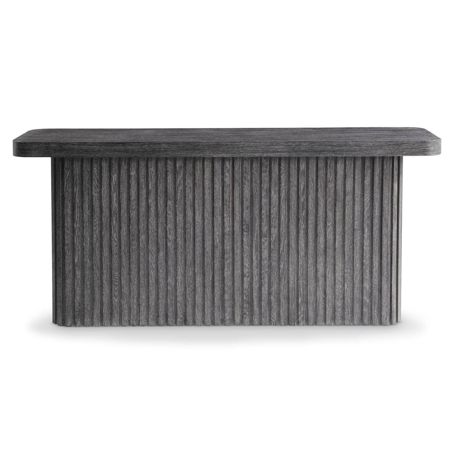 The Menton console table blends rustic-modern character with refined architectural detailing to create a versatile accent piece for entryways, living rooms, or hallways. Its ribbed base and softened rectangular top showcase beautiful woodgrain and a warm Sutton finish, providing both visual interest and practical function.