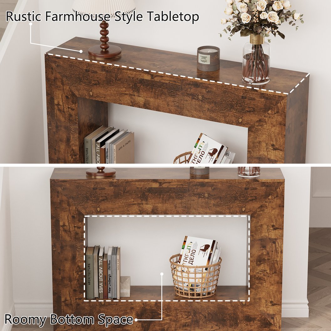 - FARMHOUSE & RUSTIC STYLE: With its vintage style, this farmhouse console table is perfect for any room in your home, its simple charm creates a warm and inviting atmosphere in your home, its narrow design makes it ideal for small spaces, and its farmhouse style adds a touch of rustic charm to your decor.
