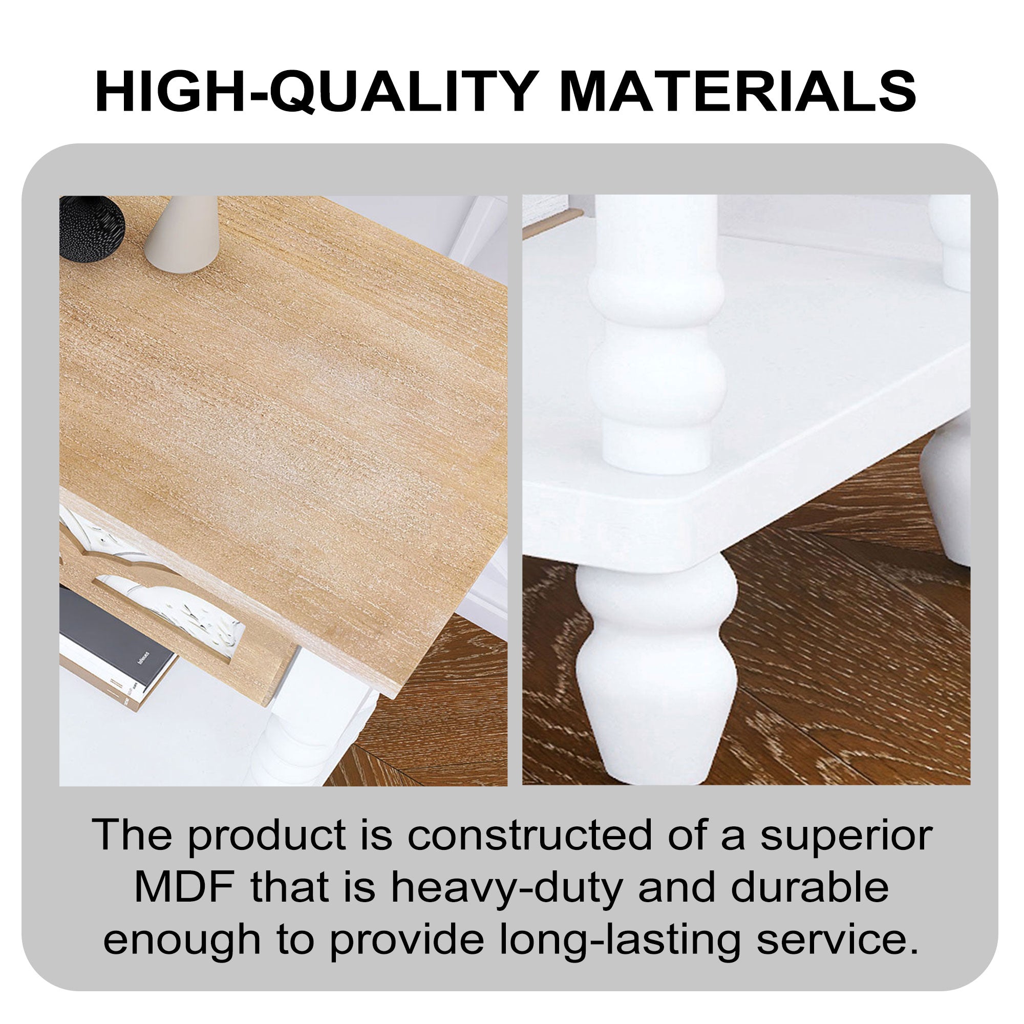 - Construction: Durable Medium Density Fiberboard (MDF) top and body with solid wood legs for added stability and long-lasting support.
