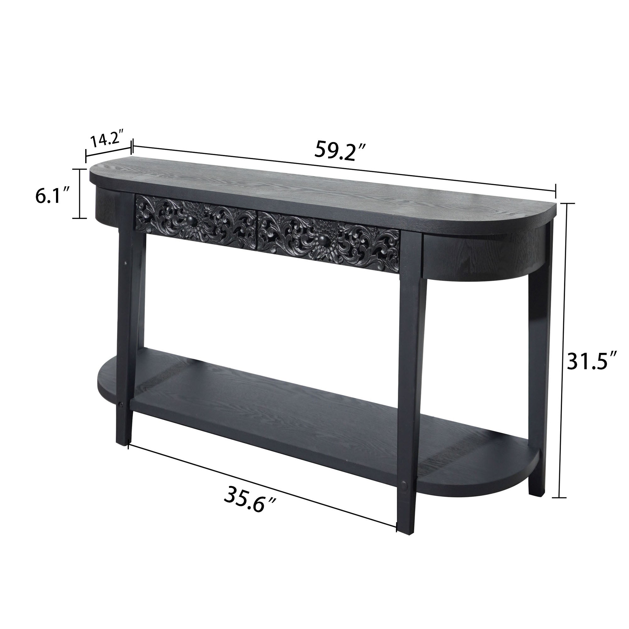 Elevate your entryway, hallway, or living room with this elegantly carved black console table that blends classical detailing with modern functionality. Crafted from engineered wood and finished in a deep black, it offers a striking focal point while providing practical storage and display space for everyday essentials and décor.
