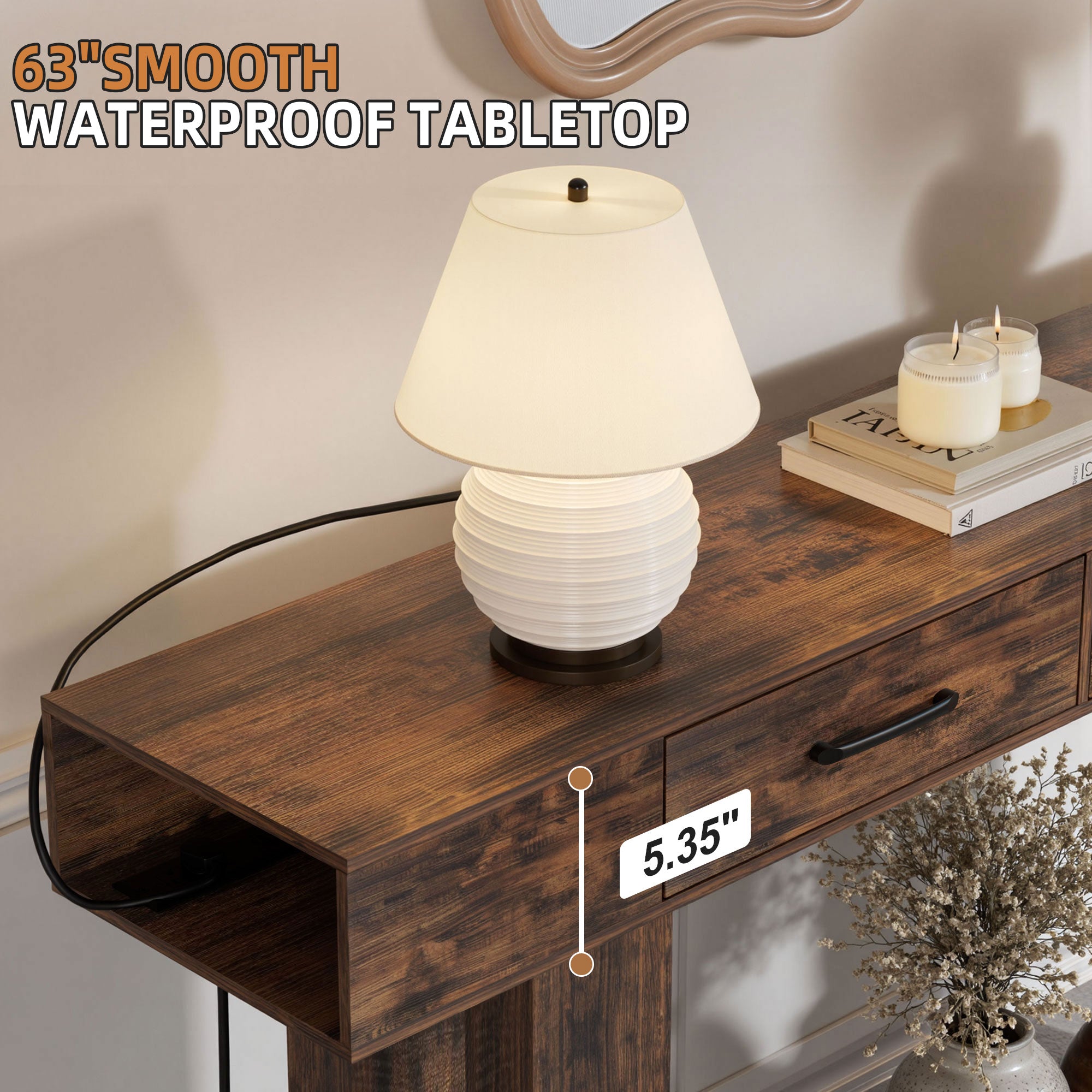 - 【Country-Inspired Elegance with Generous Length】: The console table showcases a charm endemic to farmhouse-style decor. Its impressive length of 63 inches lends abundant space for the display of decorative pieces like lamps, photo frames, or vases, creating a welcoming ambiance in any home
