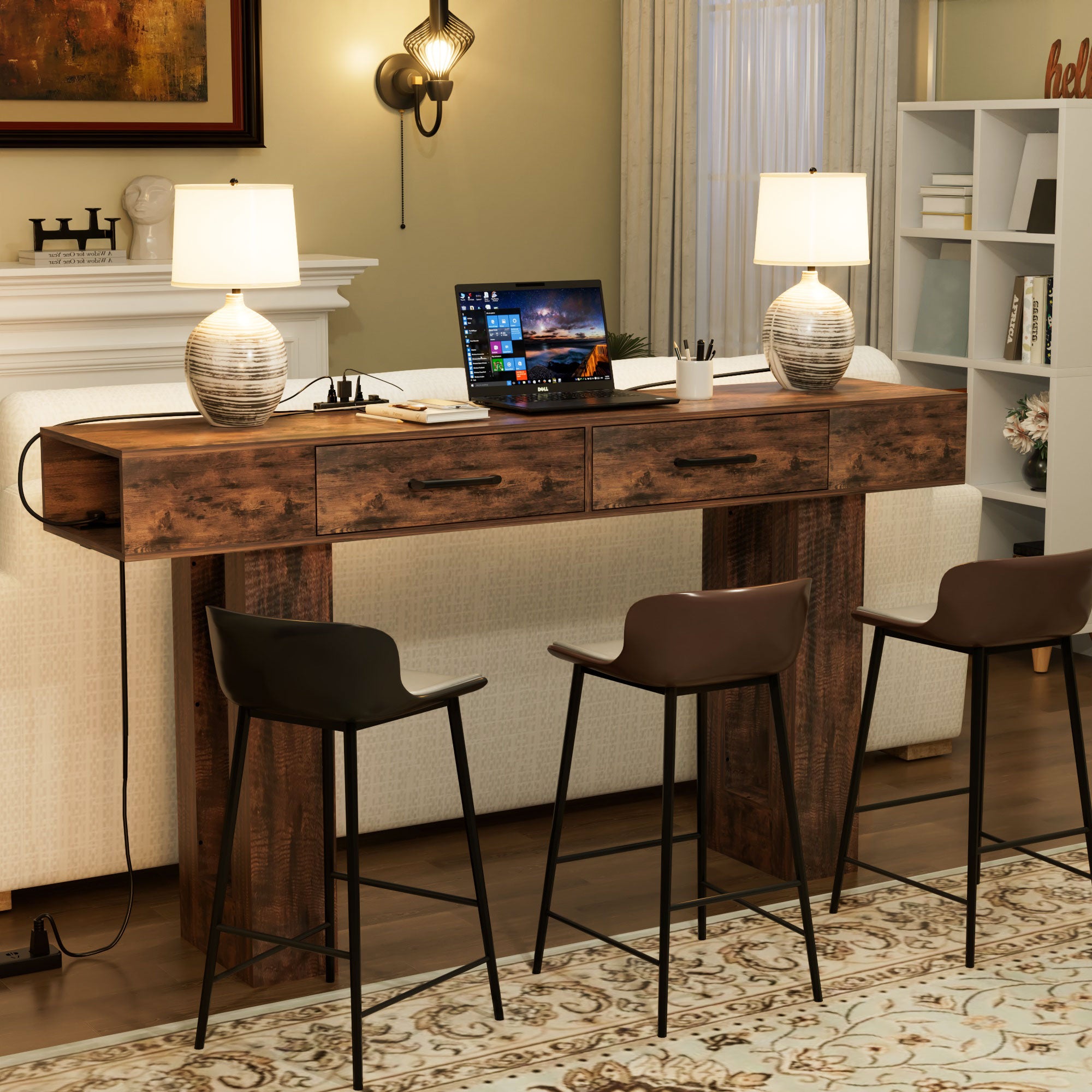 Bring farmhouse warmth and practical function into your entryway, living room, or behind the sofa with this long, rectangular console table. Thoughtfully designed for everyday use, it combines a rustic wood-like finish with sturdy engineered construction to create a versatile surface for lamps, photos, keys, and decorative accents—while its generous length offers ample display and storage opportunities without overwhelming a space.