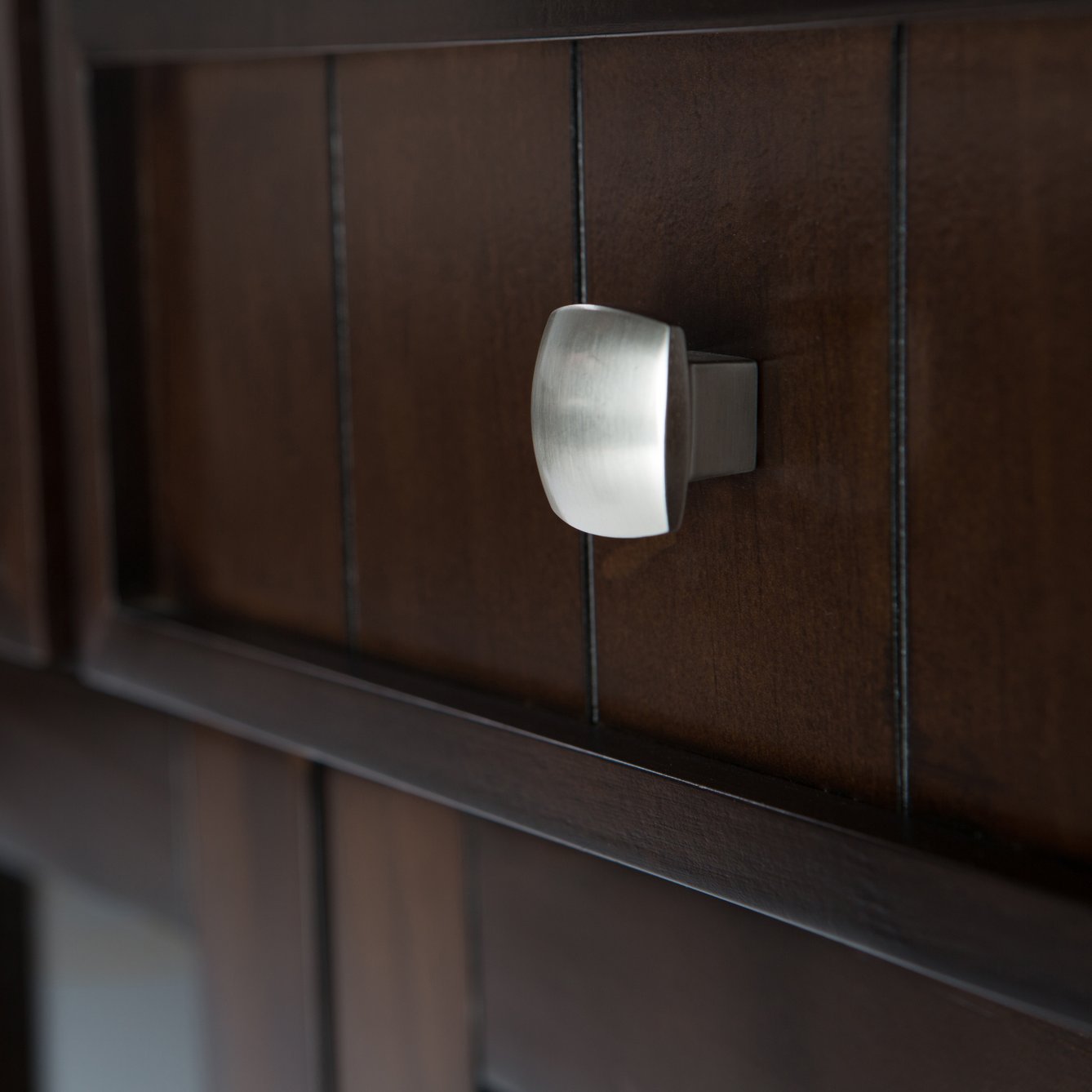- Design Details: Transitional styling with tapered legs, grooved sides, a molded crown-edged top, and brushed nickel knobs for a refined yet versatile look.