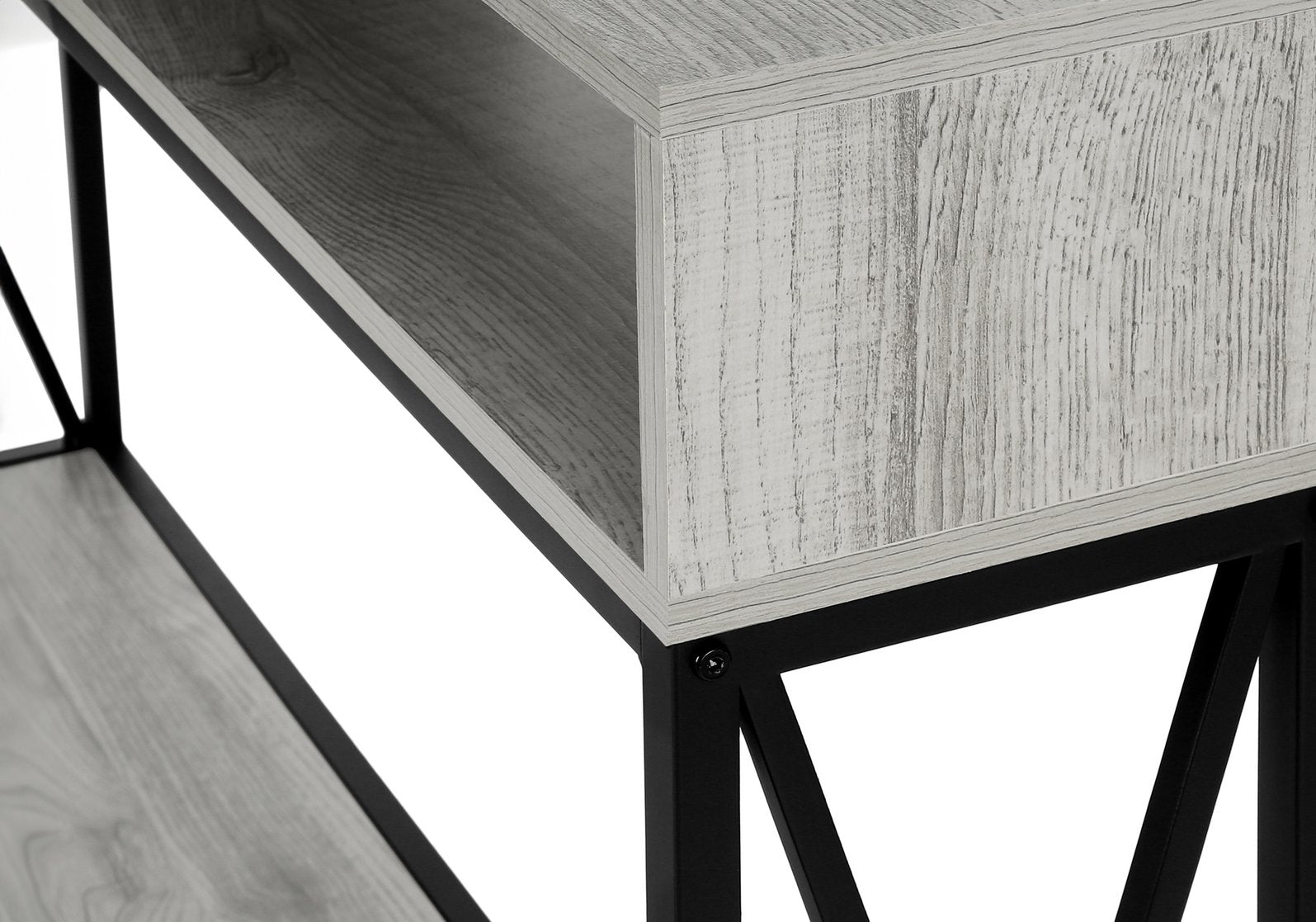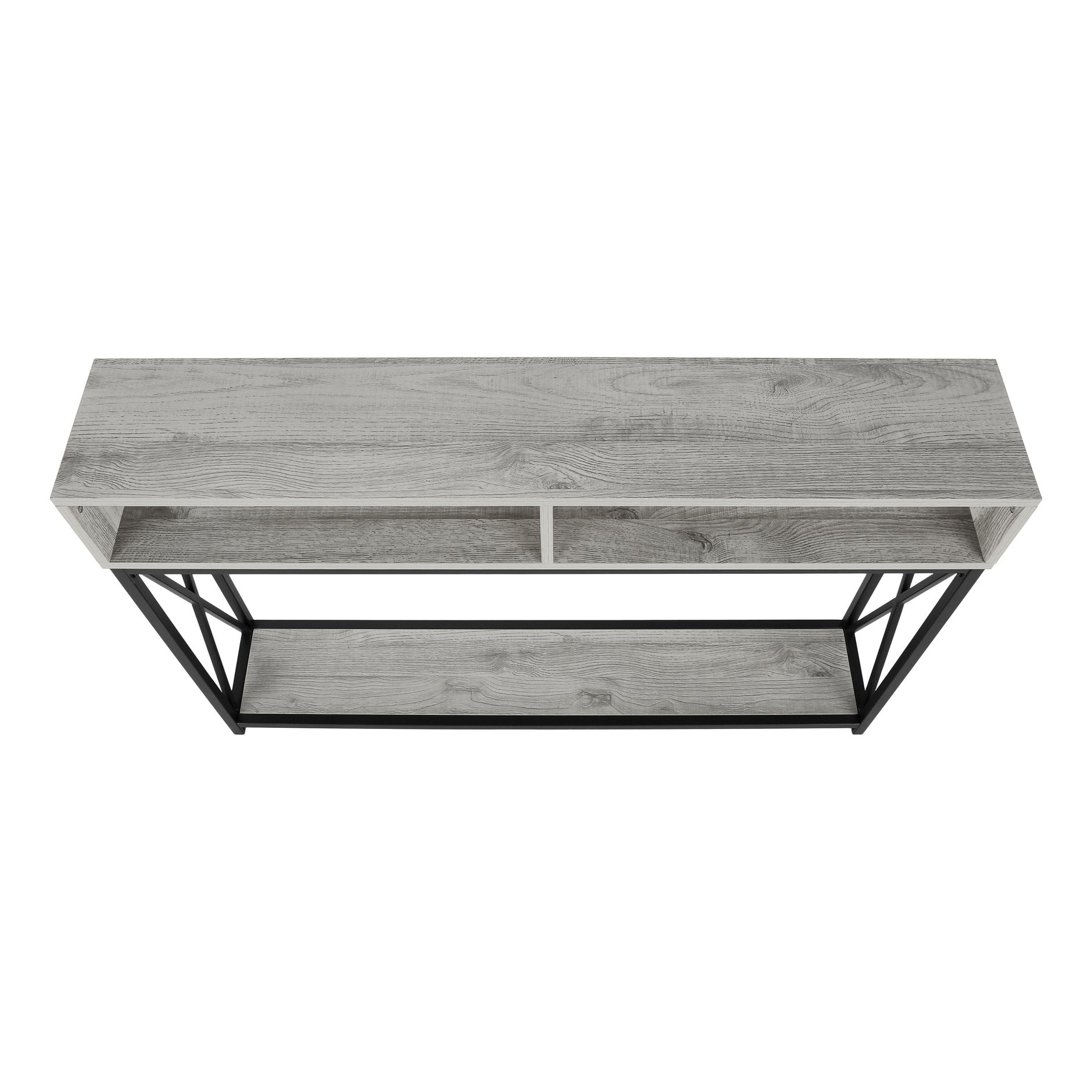 - Makes a statement as an entryway console table with its modern grey table top finish