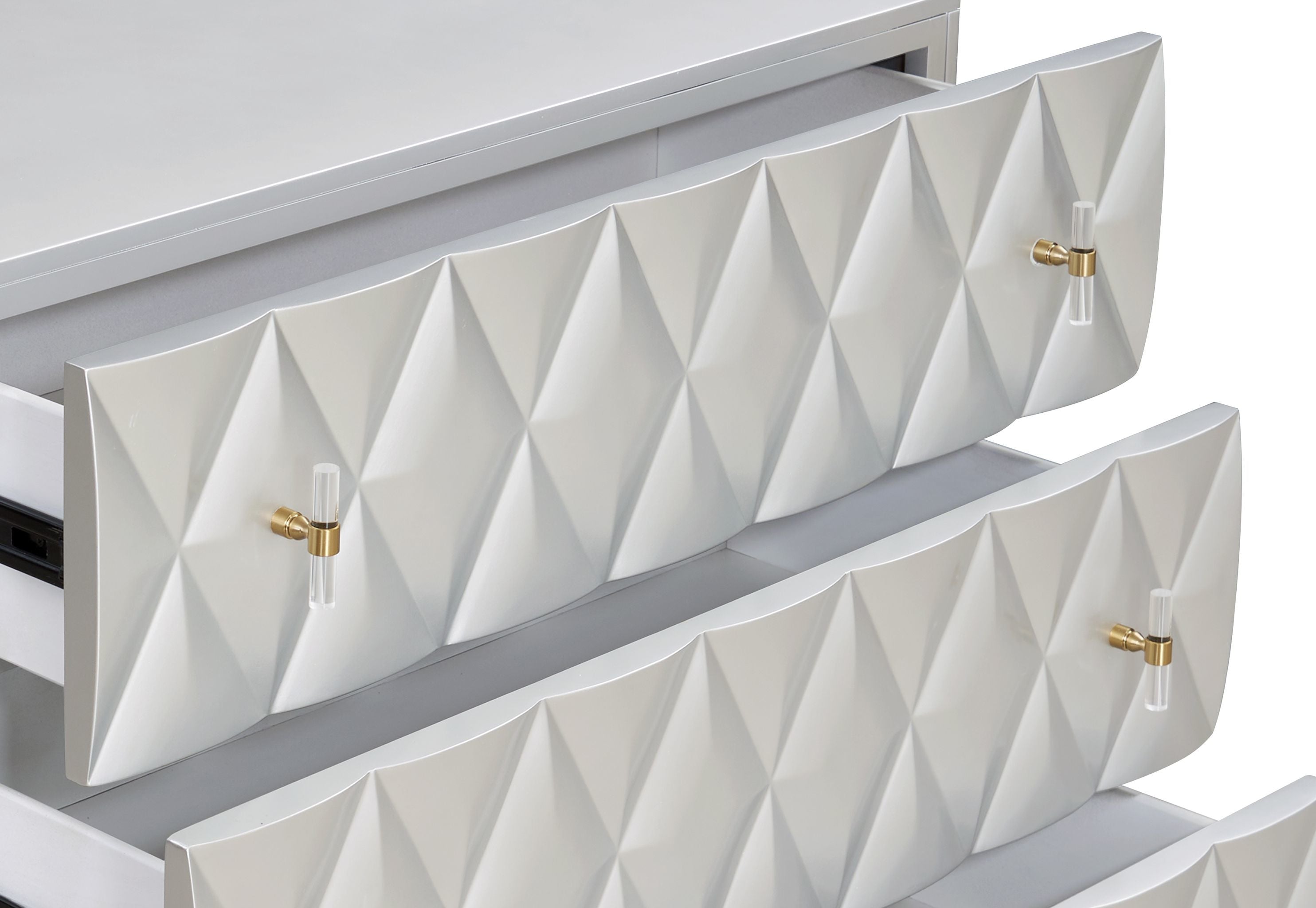 - 3D Diamond-Patterned Facade: The front of the drawers features a three-dimensional diamond pattern, adding texture and a touch of luxury.•