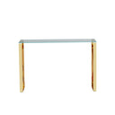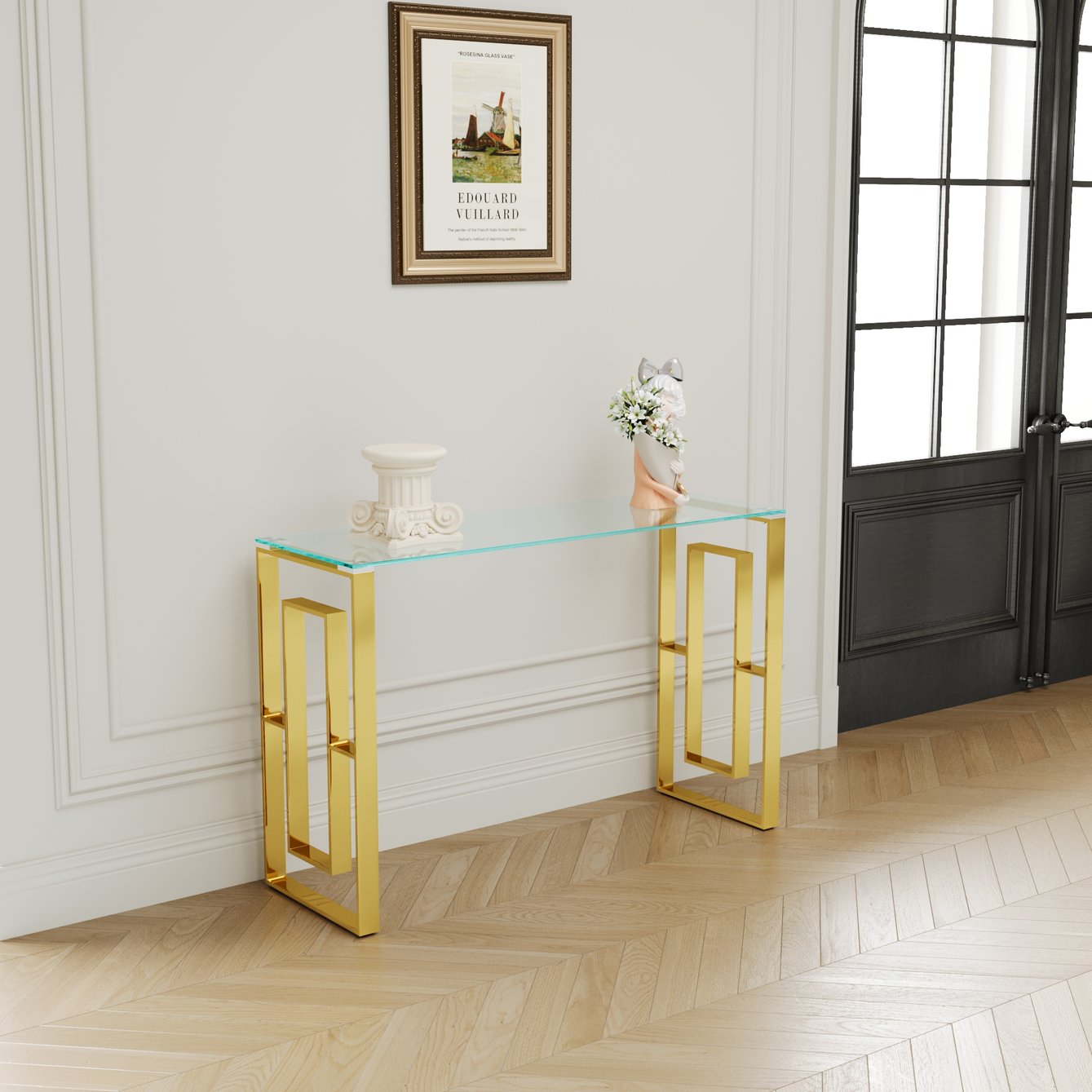 Elevate any hallway, entryway, or small living space with this sleek stainless steel and glass console table. Combining a reinforced transparent glass top with gold-finish stainless steel legs, the table delivers a refined, minimalist look while offering durable everyday performance. Its compact footprint is ideal for tight spaces, adding style and functionality without overwhelming the room.