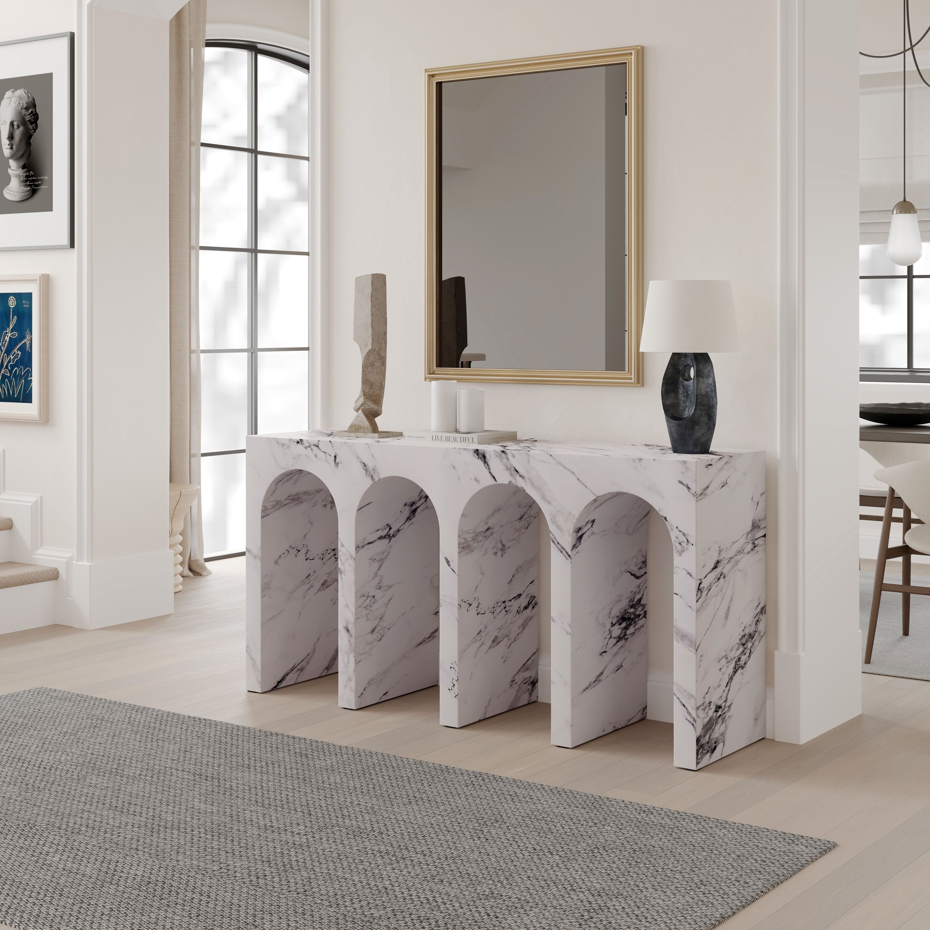 Elevate your living space with a sleek, durable console table that blends modern marble aesthetics with high-performance engineered stone construction. Thoughtfully designed for both style and everyday practicality, this piece serves as a striking focal point while standing up to the demands of daily use.