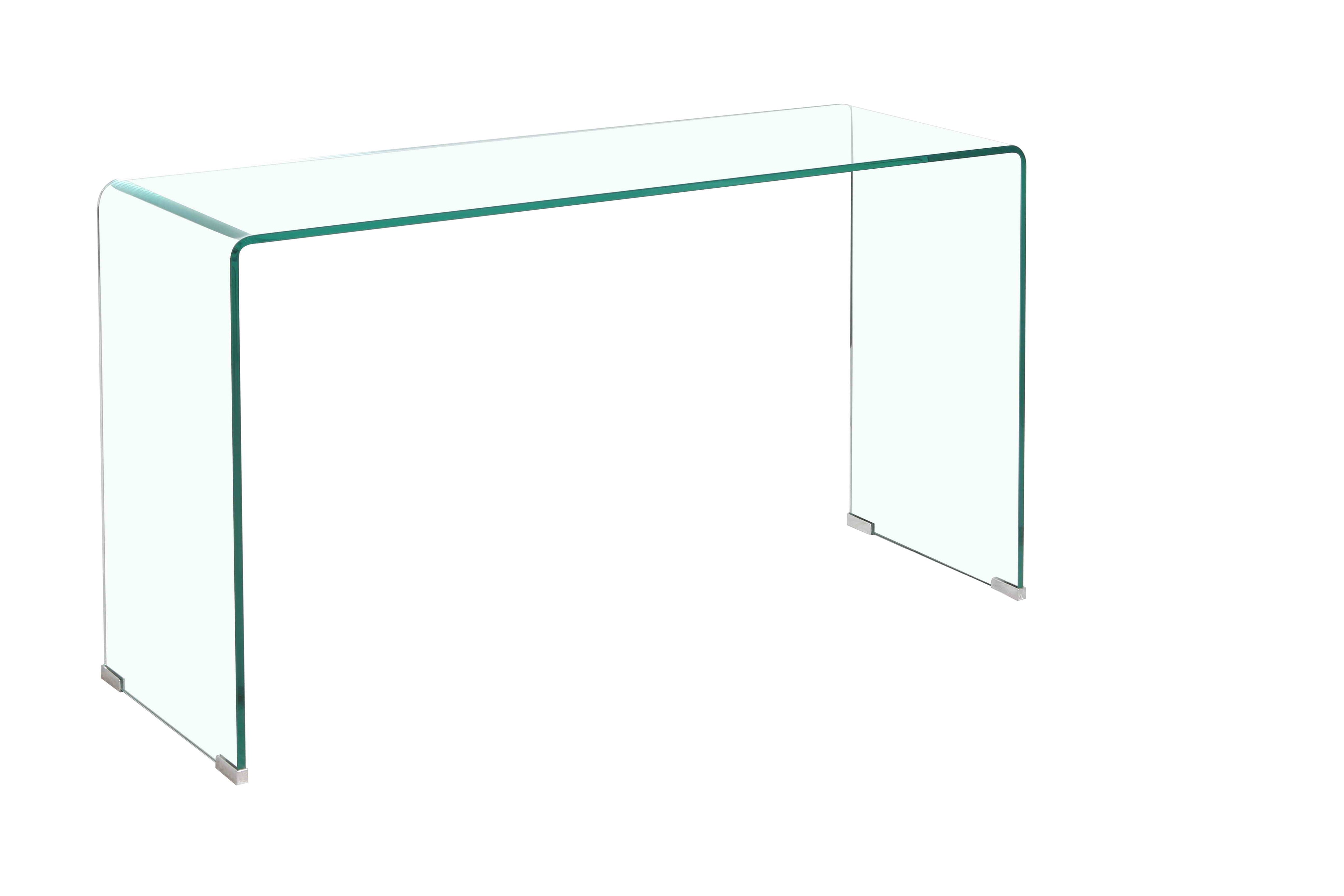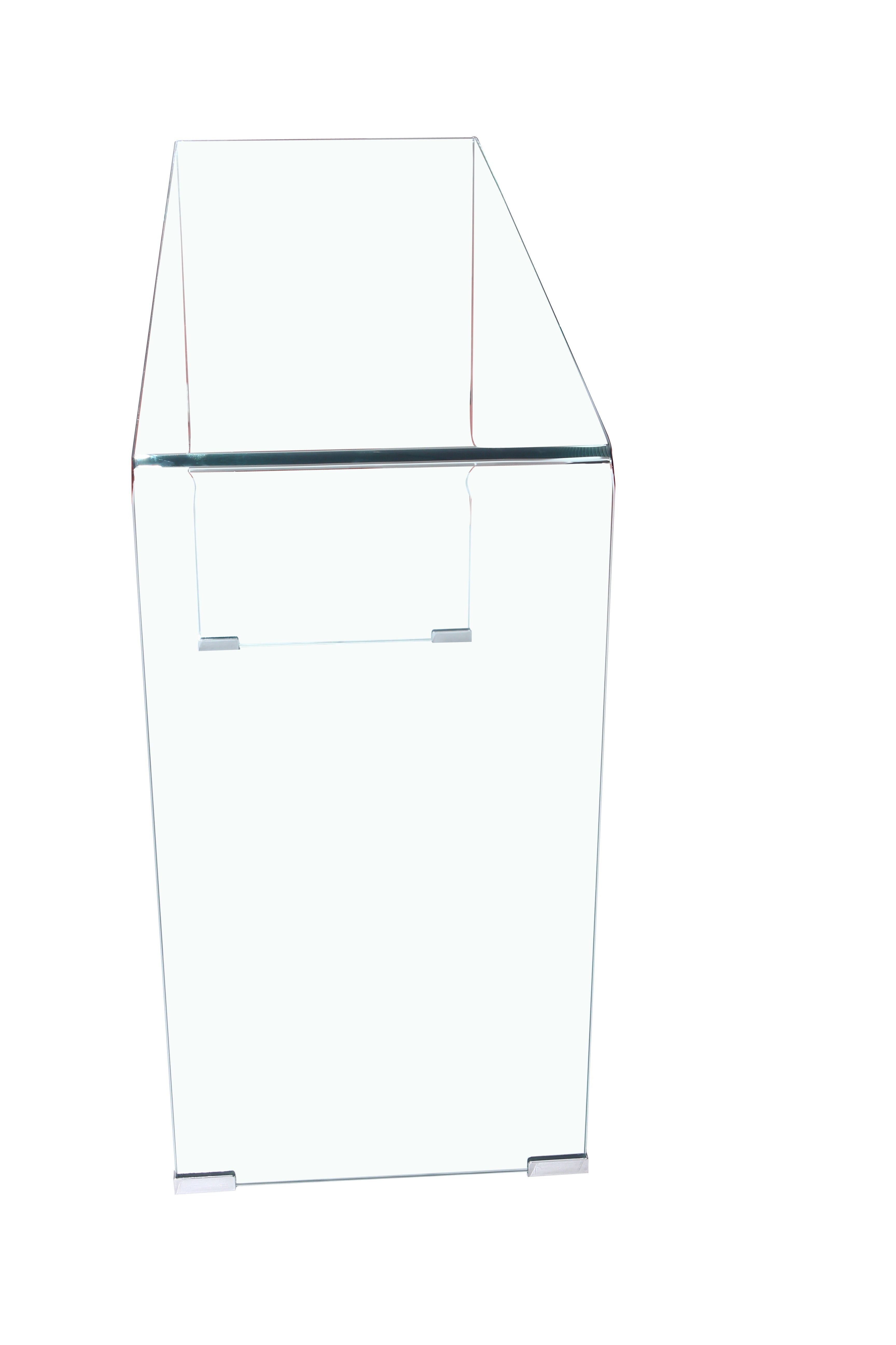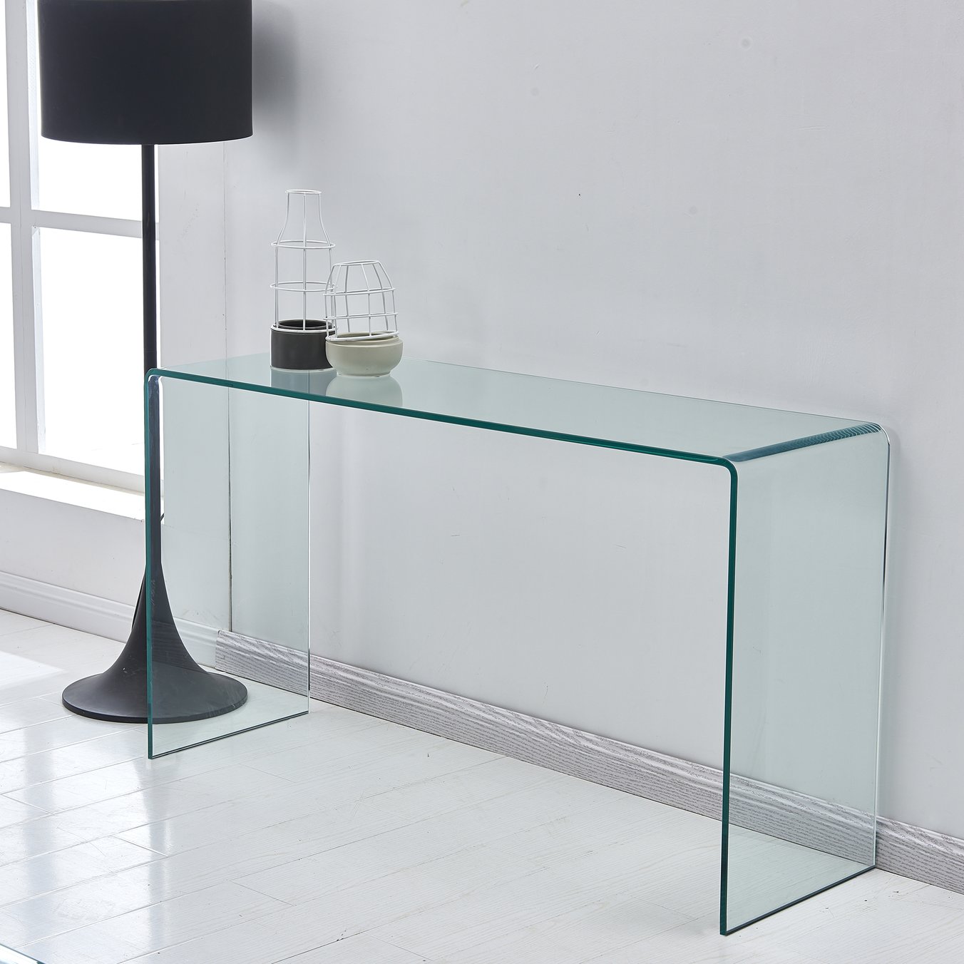 A sleek, minimal-profile glass console table that brings modern elegance and practical function to any entryway, hallway, or behind-the-sofa space. Crafted from clear tempered glass with gently rounded edges, this piece offers an airy, unobtrusive presence while providing a durable, easy-care surface for decor, work, or everyday use.