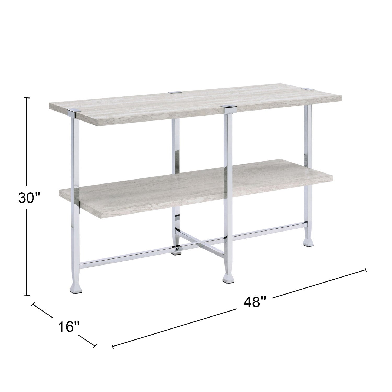 Bring modern simplicity and functional elegance to your living space with this half-moon sofa table. Its clean white oak top and chrome crossbar-supported legs create a balanced silhouette that’s perfect for anchoring an entryway, behind a sofa, or as an accent piece in a hallway. The compact, curved design makes it easy to position against a wall while offering ample surface area for drinks, decor, or lighting.