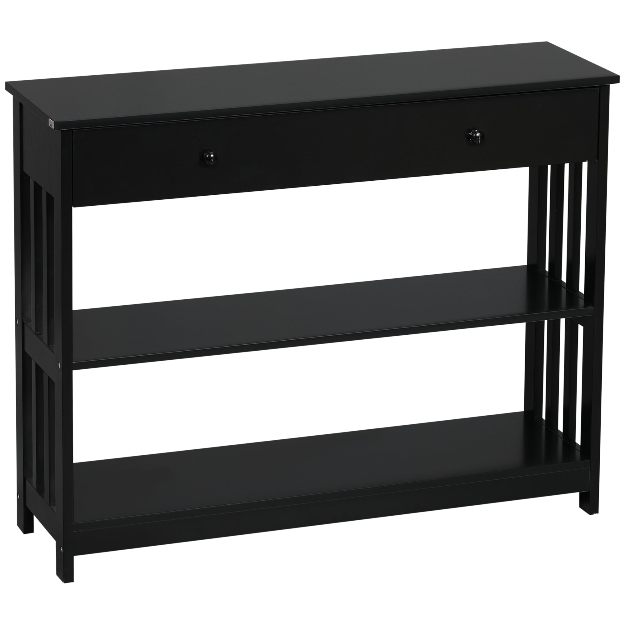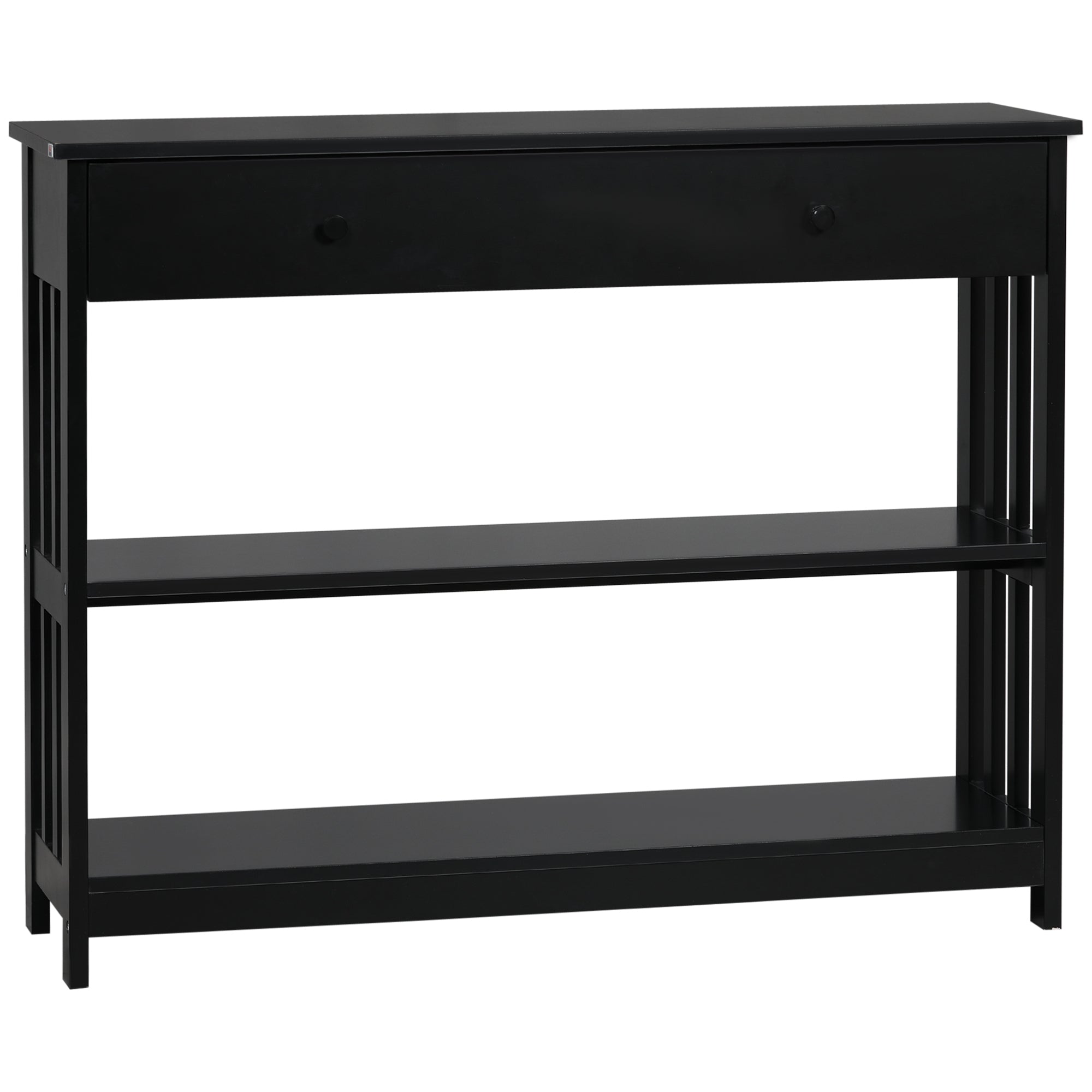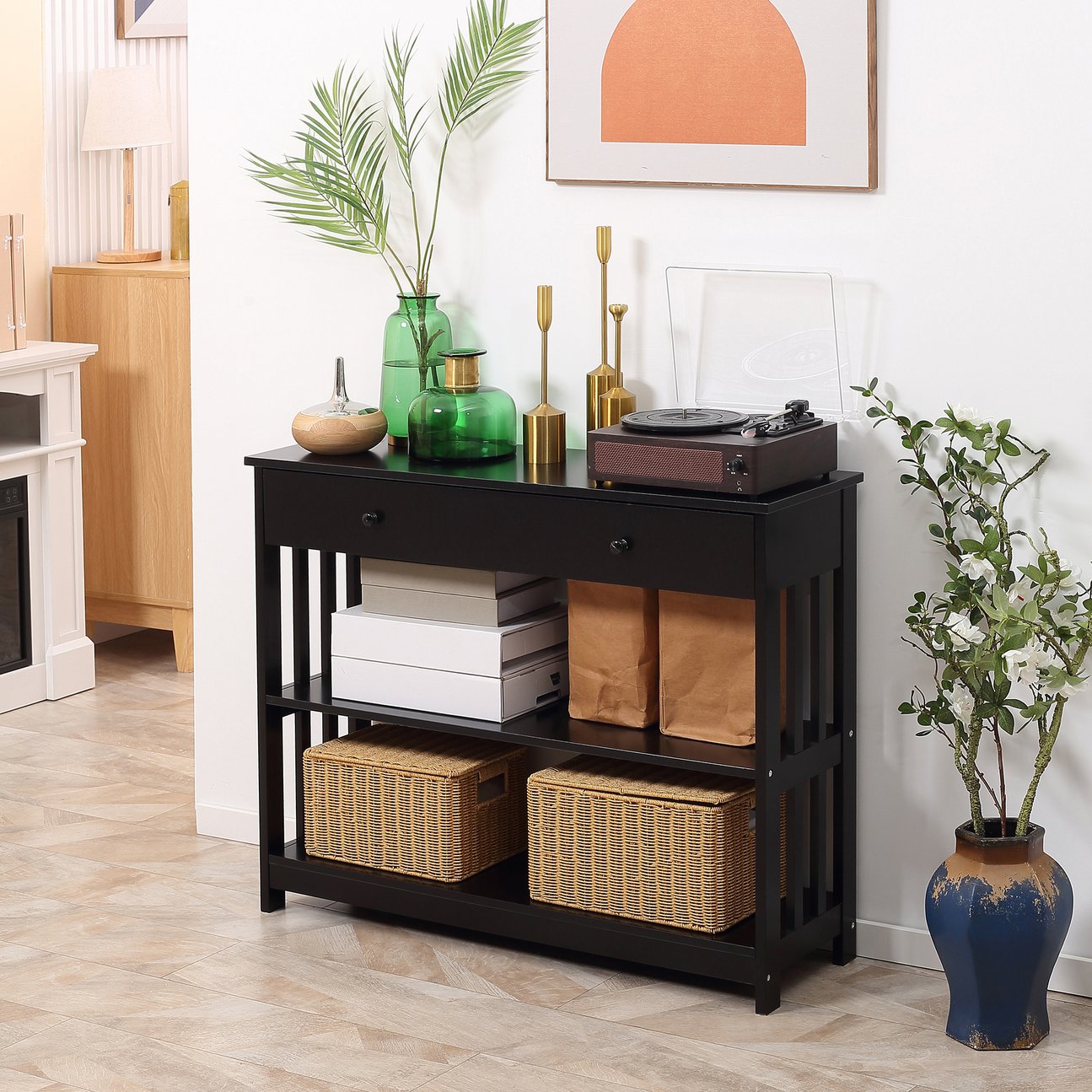 - Storage: Extra-wide pull-out drawer plus two open shelves provide space for keys, mail, books, shoes, or decorative items.