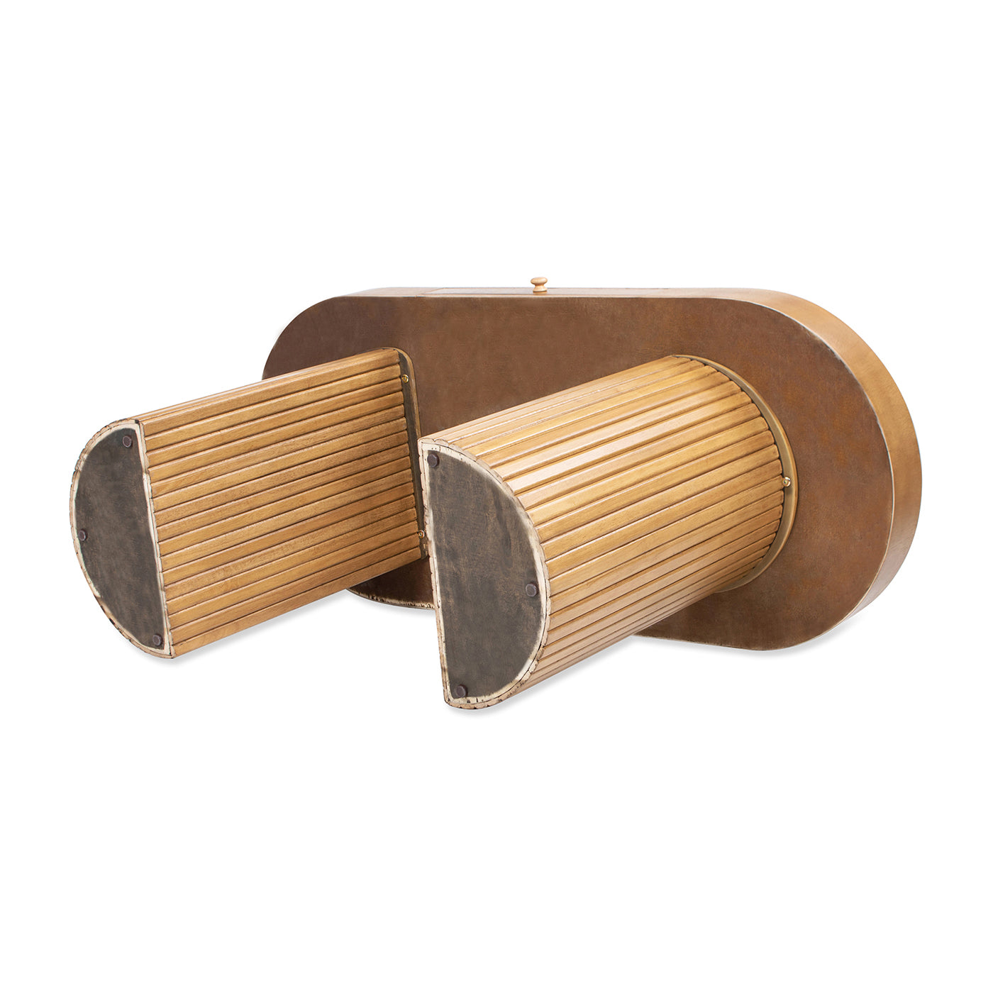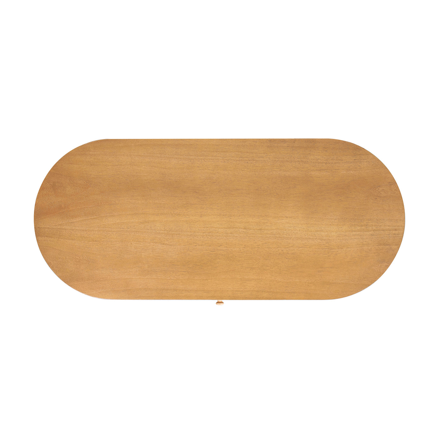 Elevate your entryway or home office with this sculptural console desk that blends modern flair with warm, natural materials. The pill-shaped top and fluted half-moon legs create a refined silhouette that works as a functional workspace or a statement piece in a foyer, while a single drawer keeps essentials neatly tucked away.