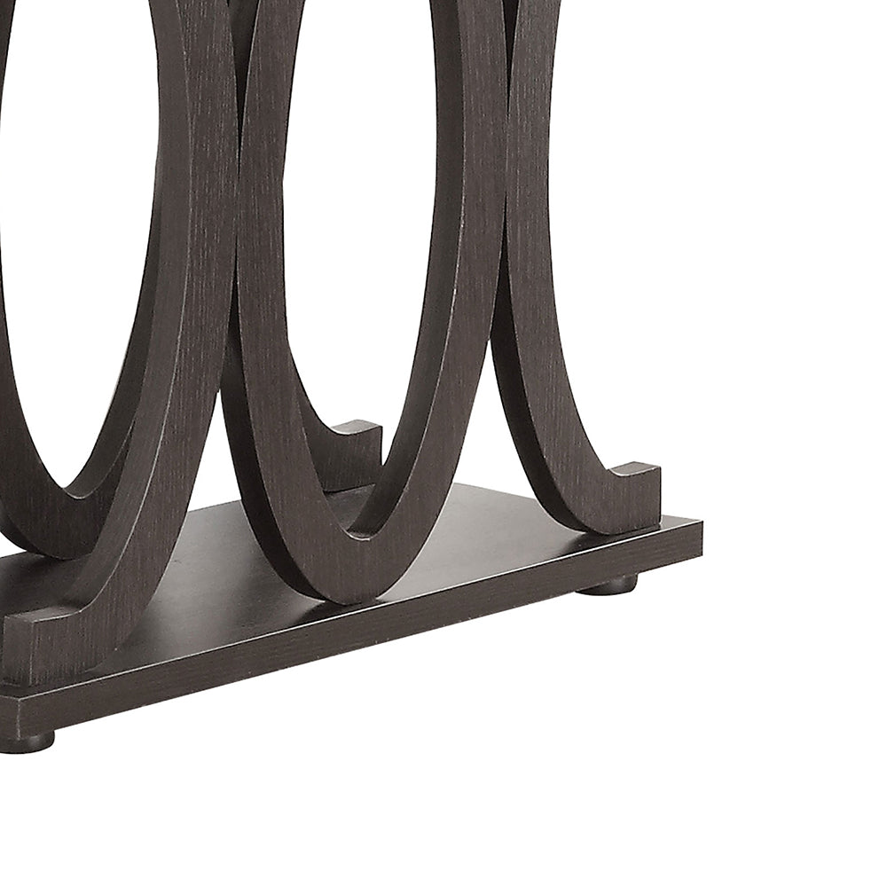 Bring welcoming warmth and practical storage to your entryway with this Karsten cappuccino console table. Its rich cappuccino finish with subtle espresso undertones complements a variety of décor styles, while engineered wood construction delivers reliable durability. Thoughtfully designed with a classic silhouette and ample surface area, this console keeps everyday essentials organized — from shoes and scarves to keys and mail — while adding a polished, cohesive look to your home.