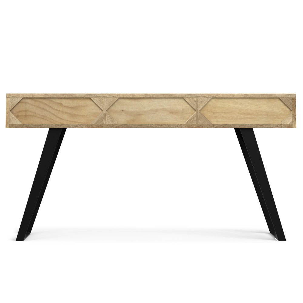 Elevate your entryway, living room, or bedroom with a versatile console that blends modern industrial style and handcrafted woodwork. This piece pairs solid mango hardwood with sturdy metal legs for a warm, textured look that’s built to last while remaining practical for everyday use.