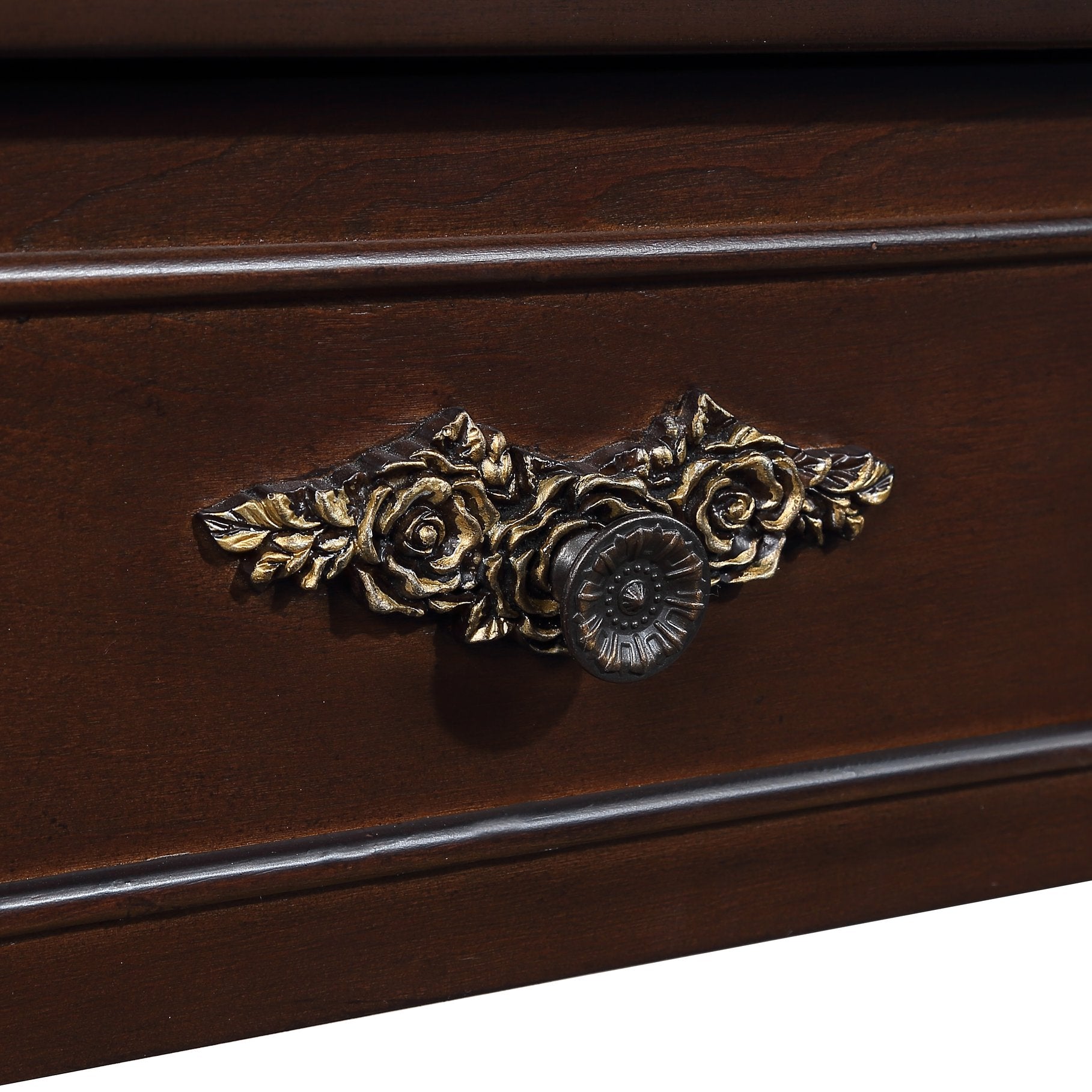 - Decorative accents: Polyester resin ornamentation on drawer fronts adds vintage character and visual interest.
