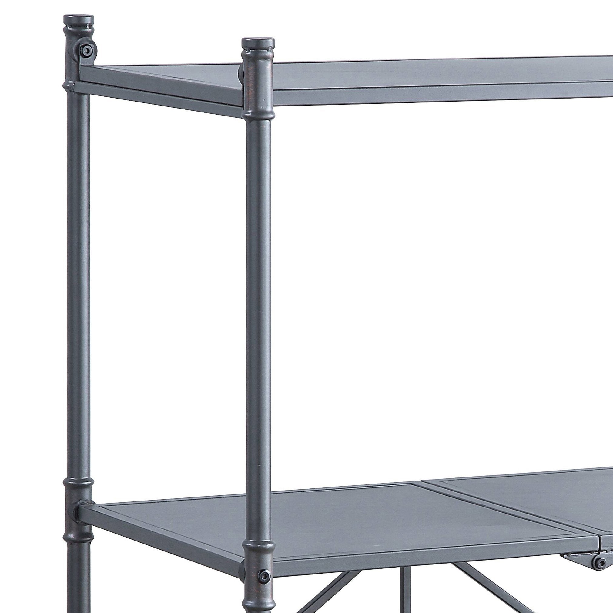 Bring industrial charm and practical storage to your entryway, living room, or dining area with this 3-tier console table. Inspired by water-pipe construction and finished in sandy black and dark bronze, it pairs rugged character with clean lines for a versatile accent that works with rustic, loft, and transitional interiors. Lightweight and foldable, it’s easy to move or store while providing sturdy display space for decor, serving pieces, or everyday essentials.