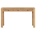 Bring timeless rustic charm and everyday practicality to your entryway, hallway, or living room with this sturdy console table. Thoughtfully designed with curved corners and legs for safety, a distressed natural finish, and three concealed drawers, it blends vintage character with modern functionality—perfect for organizing essentials while showcasing decorative items.