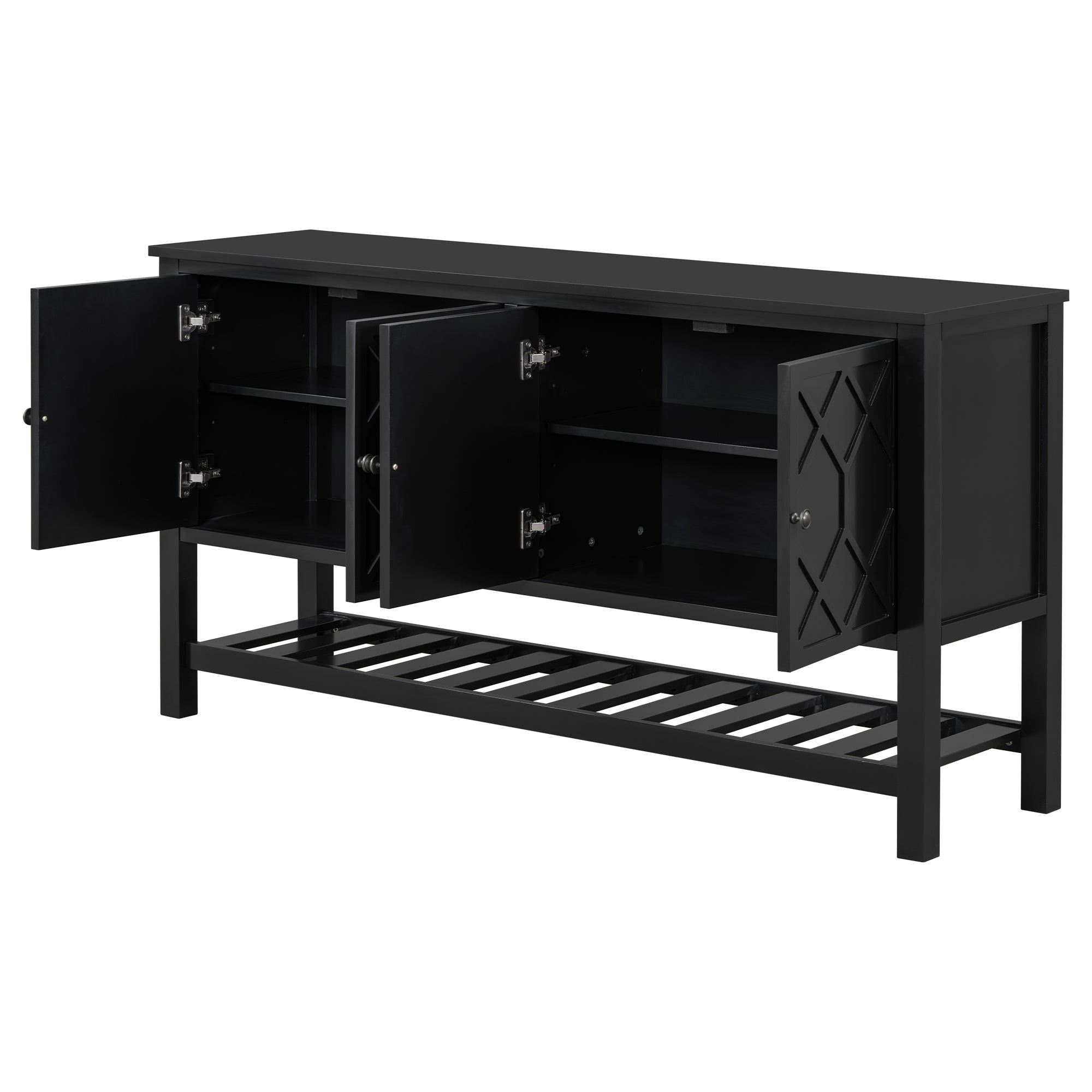 - [Unique Polygonal Patterns]:Featuring cabinet doors adorned with intricate polygonal designs, this entryway table adds a touch of artistic sophistication. The geometric motifs create visual intrigue, making it a stylish centerpiece for any space.