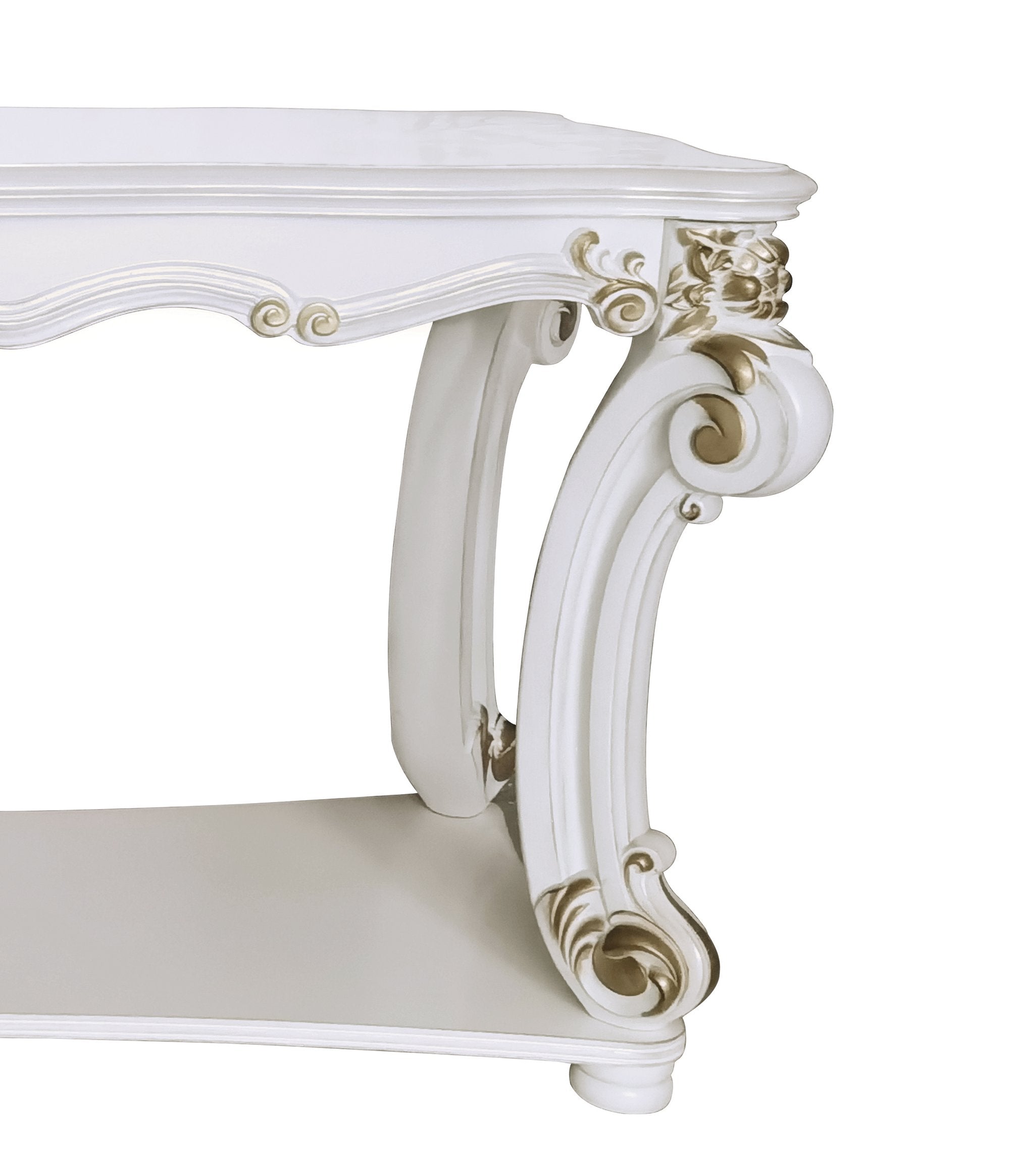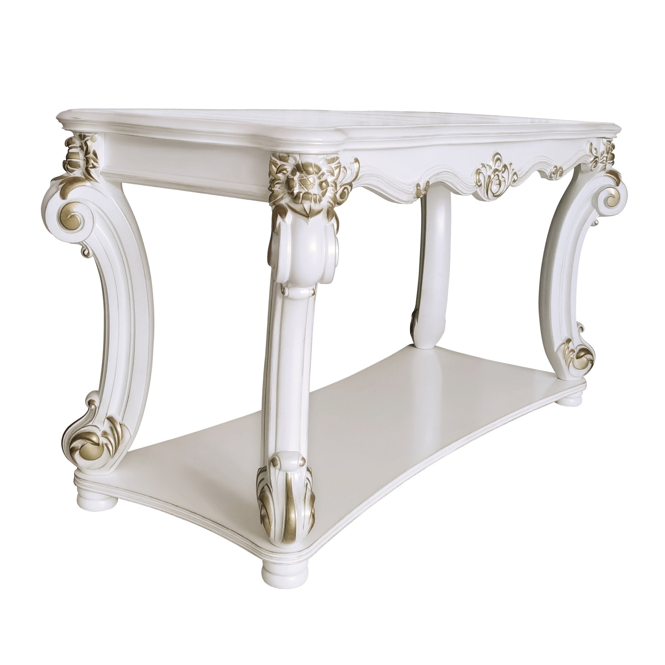 Elevate your entryway or living room with this elegant antique-inspired sofa table. Finished in a soft pearl white, it combines classic decorative details with practical functionality to create a refined focal point that complements traditional and transitional interiors.